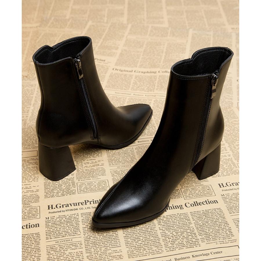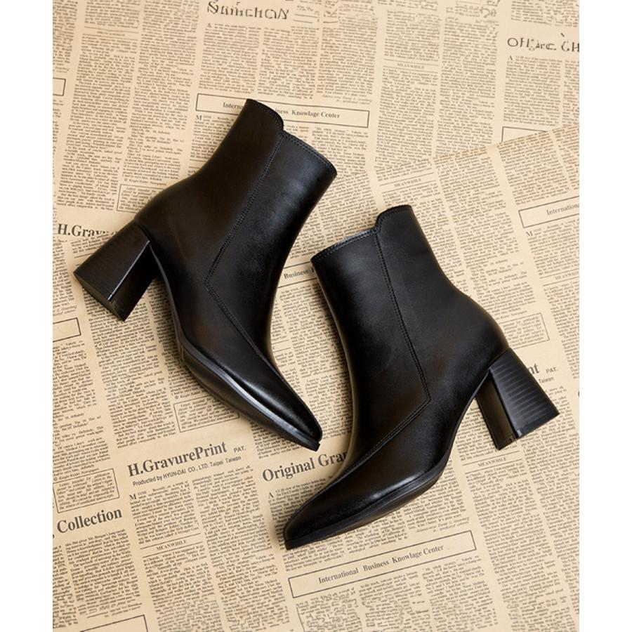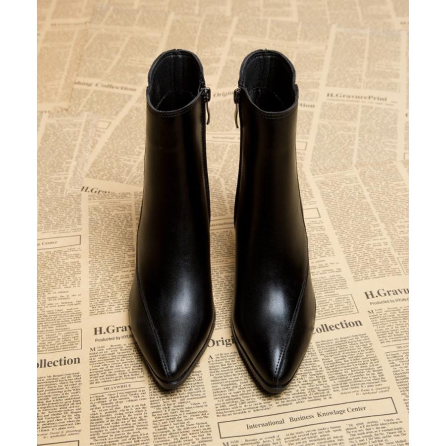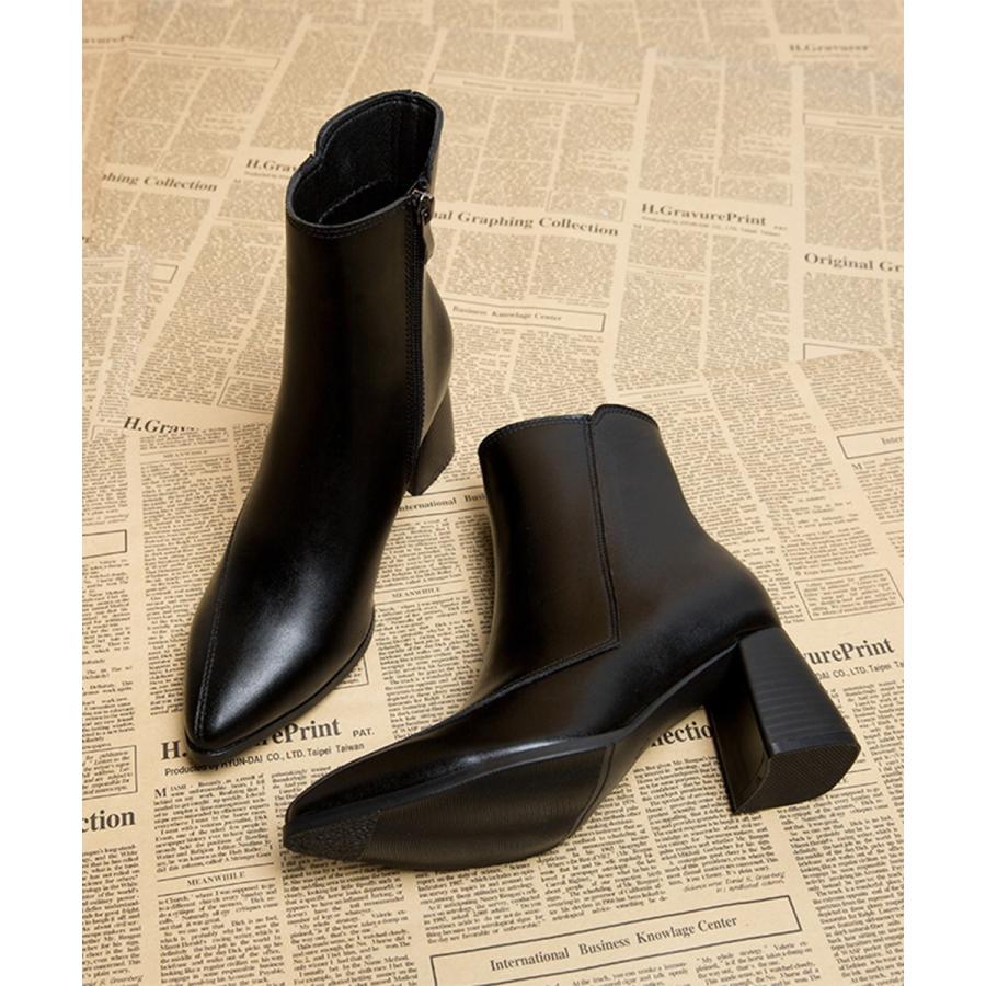 ブーティ ポインテッドトゥ 歩きやすい ショート丈 チャンキーヒール ミドルブーツ シンプル 美脚 おしゃれ 大人 通勤