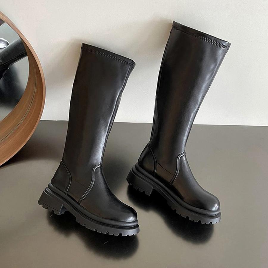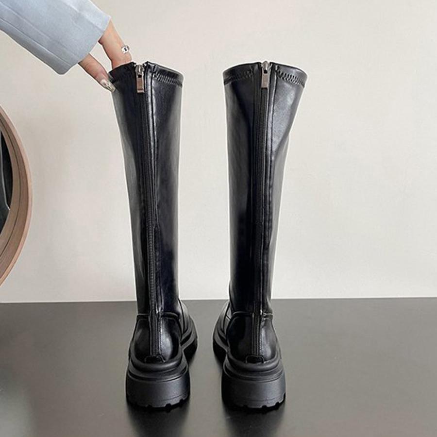 ニーハイブーツ 膝下 ジョッキーブーツ バックジップ厚底 PUブーツ 太ヒール 靴 履きやすい 秋冬人気新作 くつ