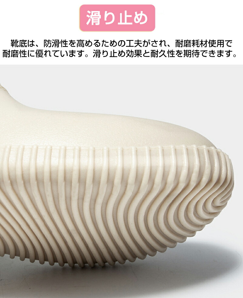 靴底は、防滑性を高めるための工夫がされ、耐磨耗材使用で耐磨性に優れています。滑り止め効果と耐久性を期待できます。