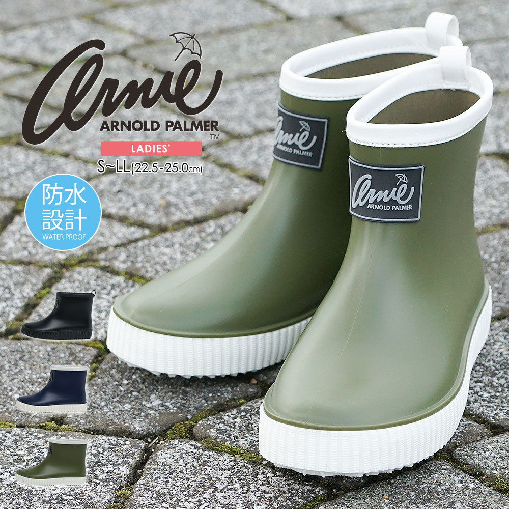 アーノルドパーマー レインブーツ レディース ショート 長靴 おしゃれ レインシューズ 通勤 歩きやすい 通気性 黒 ブラック グリーン ネイビー 0991