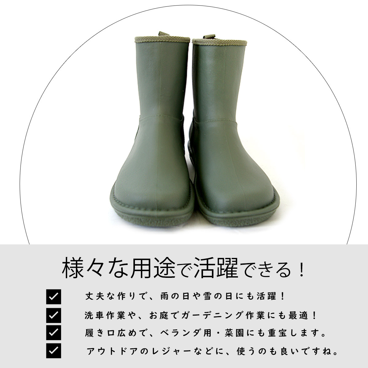 レインブーツ ショート レディース 日本製 高品質 ラバーブーツ 長靴 ガーデンシューズ レインシューズ ラバーシューズ ラバーブーツ