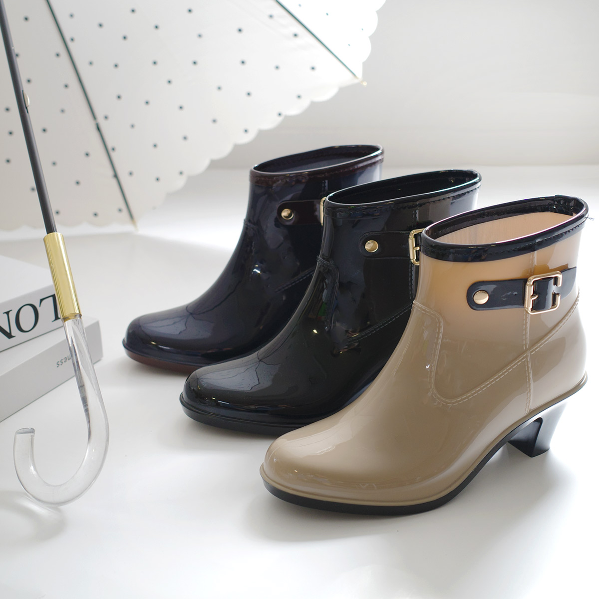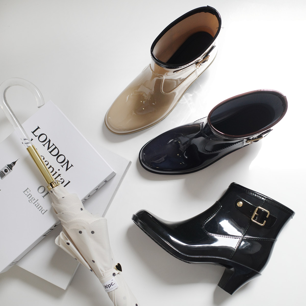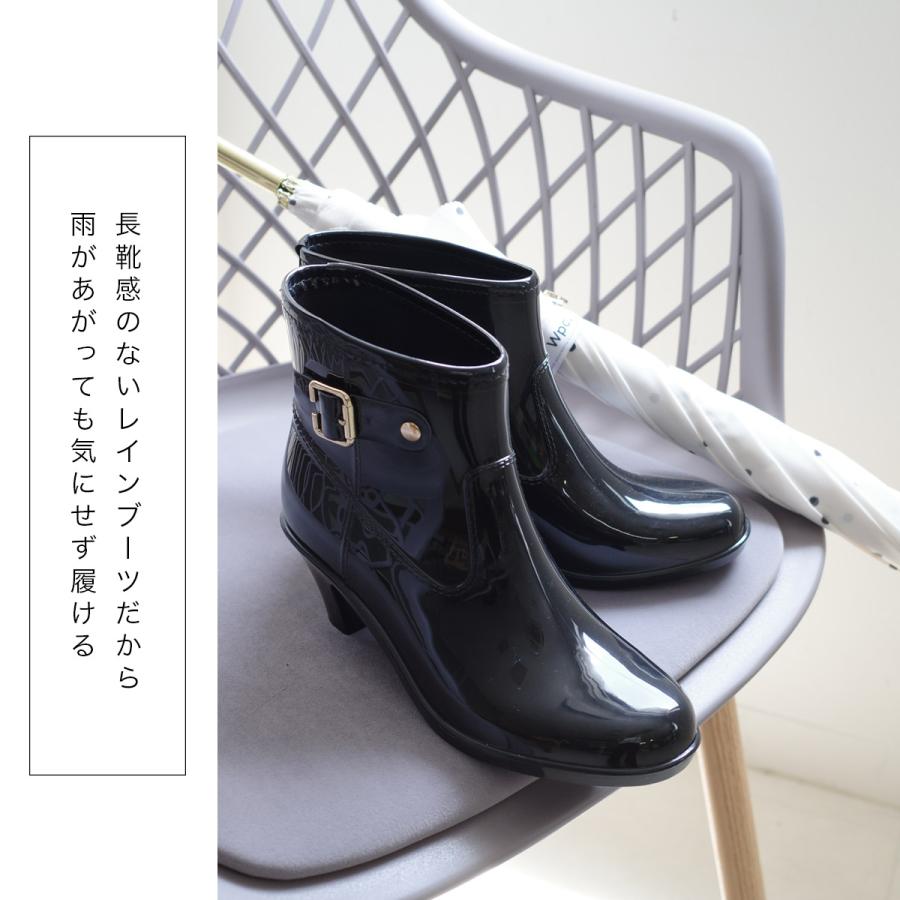 程よい高さのヒール、ベルトデザインで雨の日もオシャレに出かけられるアイテムです。