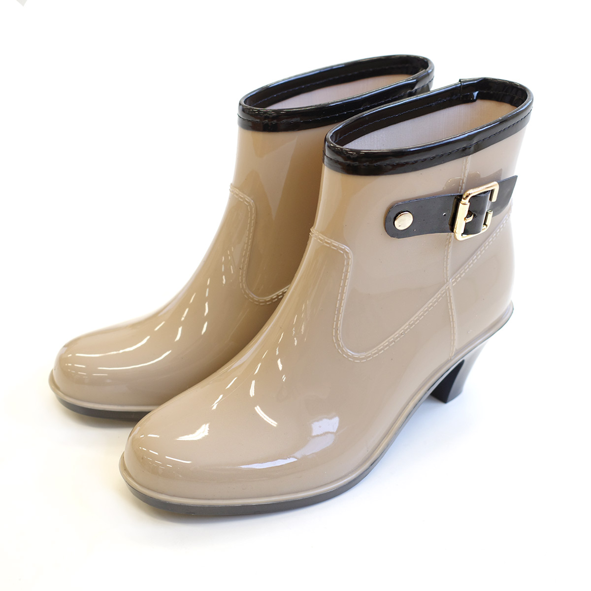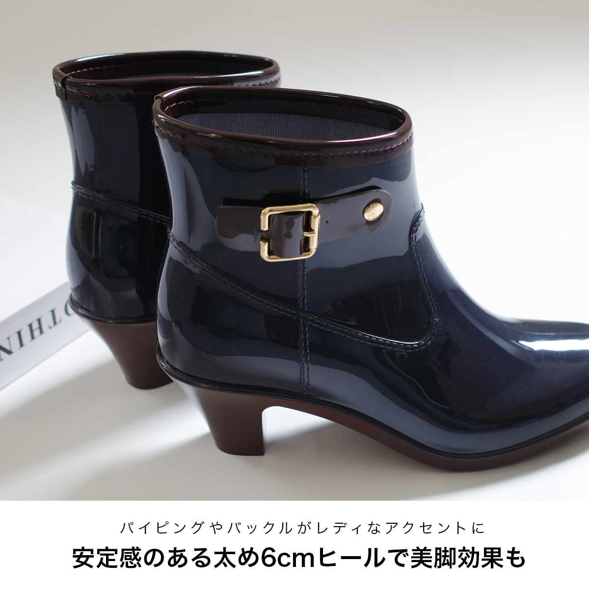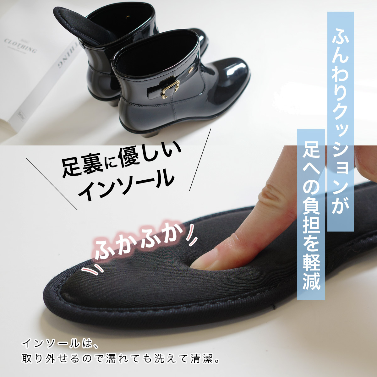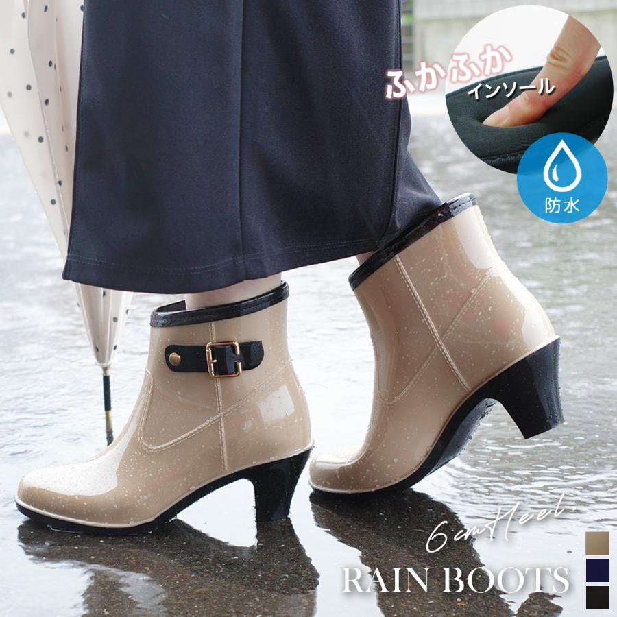 長靴 雨靴 ショートブーツ 痛くない 歩きやすい 履きやすい ヒール ブラック ベージュ ネイビー ブラウン グレー ラバー 雨・晴れ兼用 撥水 ショート ブーティ バイカラー レイン ベルト インソール付き 22.5 23.0 23.5 24.0 24.5 ふかふか 梅雨