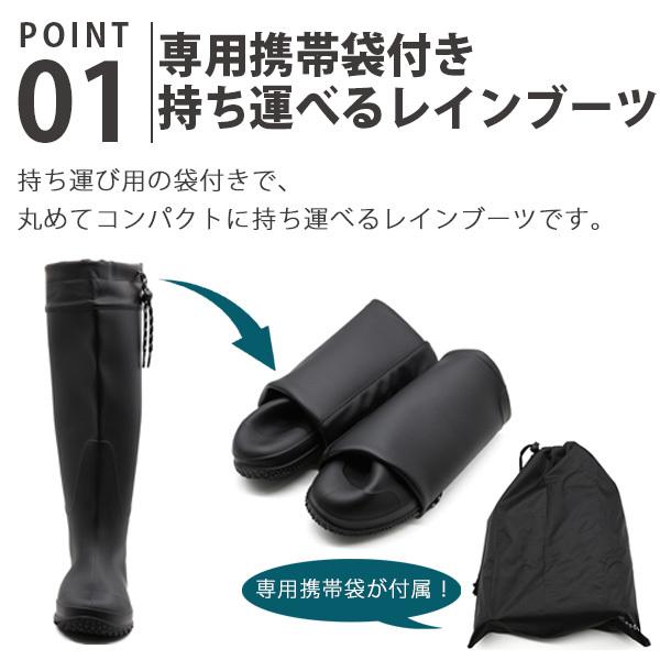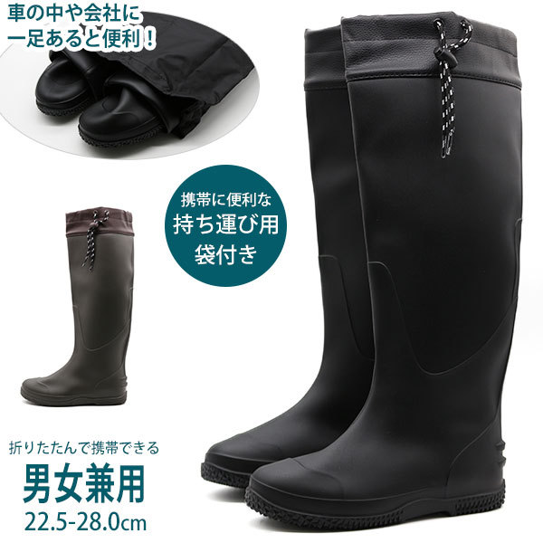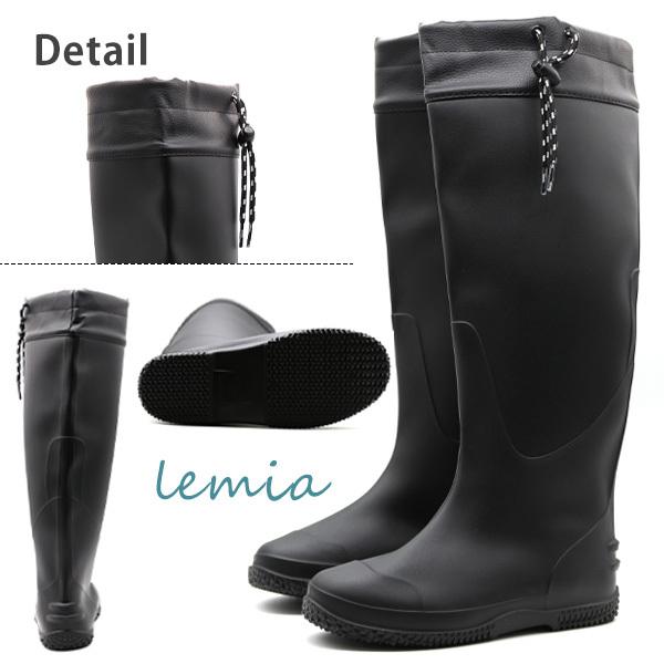 レインブーツ メンズ レディース 長靴 ロング 黒 ブラック 防水 滑りにくい 雨 折りたたみ 袋付き レミア Lemia RM-0800