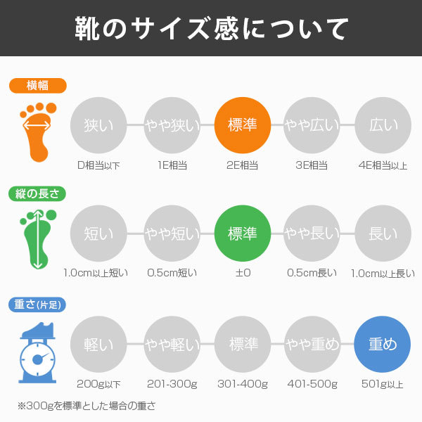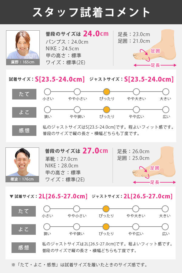取り扱いサイズ:SS[22.5-23cm] S[23.5-24cm] M[24.5-25cm] L[25.5-26cm] 2L[26.5-27cm] 3L[27.5-28cm]