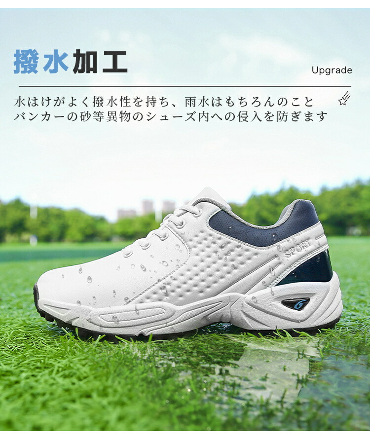水はけがよく撥水性を持ち、雨水はもちろんのこと、バンカーの砂等異物のシューズ内への侵入を防ぎます。