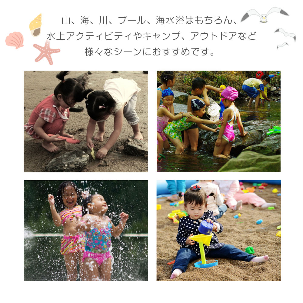 山、海、川、プール、海水浴はもちろん、水上アクティビティやキャンプ、アウトドアなど様々なシーンにおすすめです。