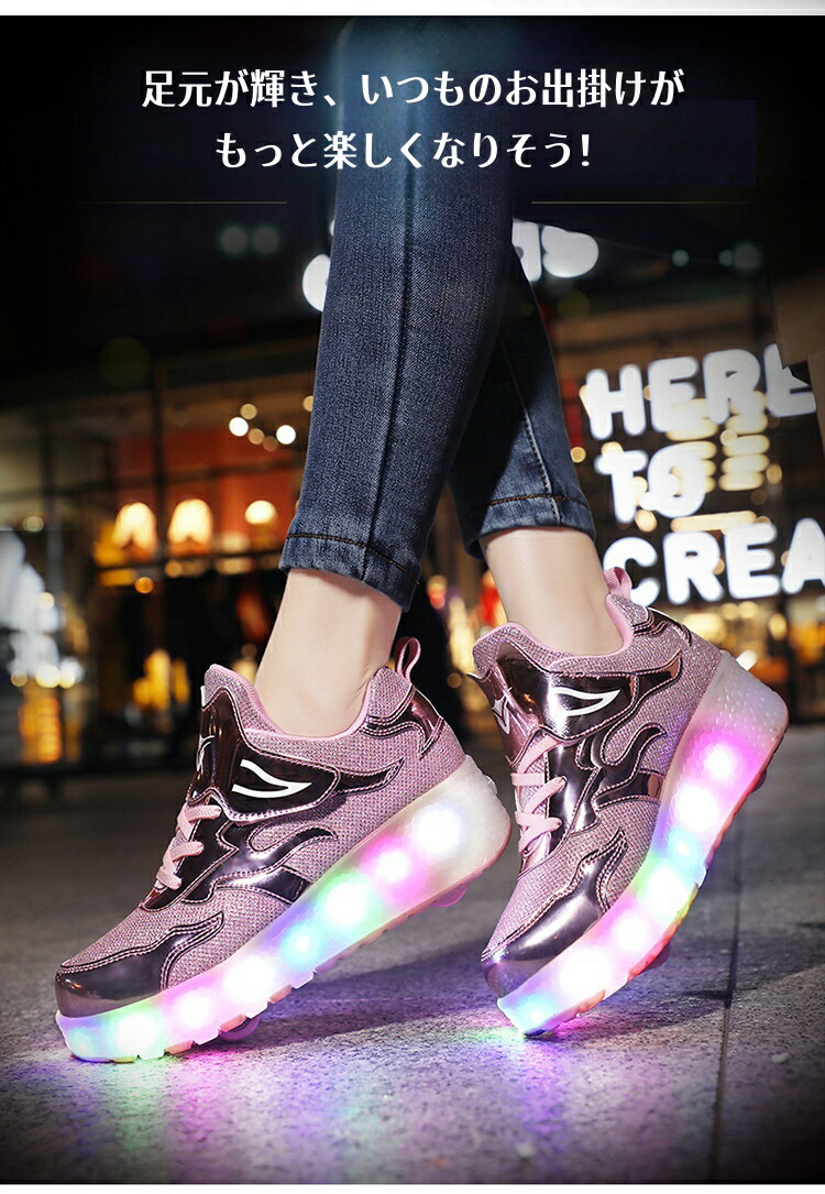 ローラーシューズ 子供 2輪 子供用 キッズ ローラースケート 大人 光る靴 男の子 女の子 発光シューズ スニーカー 子供靴 LEDシューズ クリスマス スポーツ 靴 2WAY 誕生日プレゼント