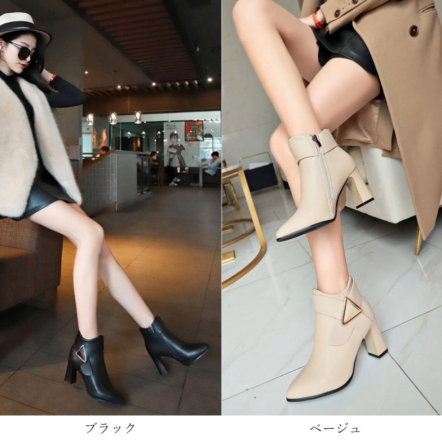 チャンキーヒール ブーティ ブーツ ショートブーツ レディース 歩きやすい 痛くない 靴 滑り止め 太ヒール ショート レディース 歩きやすい ポインテッドトゥ ブーツ サイドファスナー