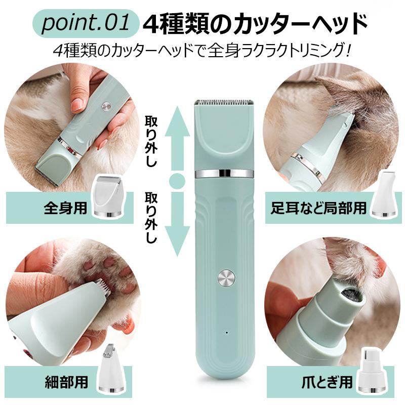 バリカン 犬 猫 ペット用 4in1 静音 犬用 猫用ペット ペットグッズ ペット用お手入れ用品 爪ケア用品 爪切り