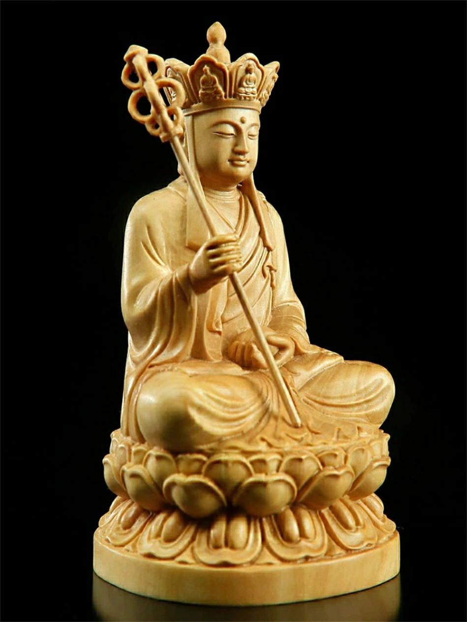地蔵王菩薩 置物 柘植製高級木彫り 蓮華座 彫刻仏像 手日用品雑貨 文房具 手芸 仏壇 仏具 神具 仏具 仏像