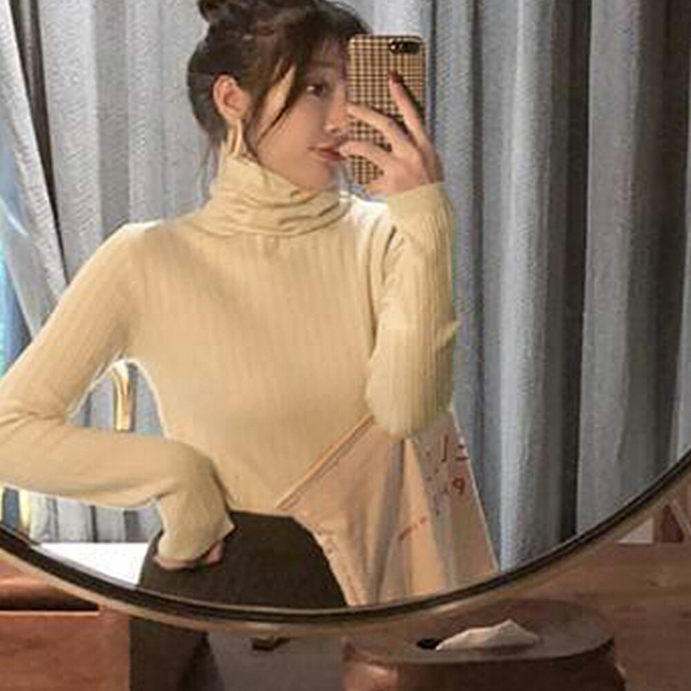 リブ ニットトップス タートルネックイ