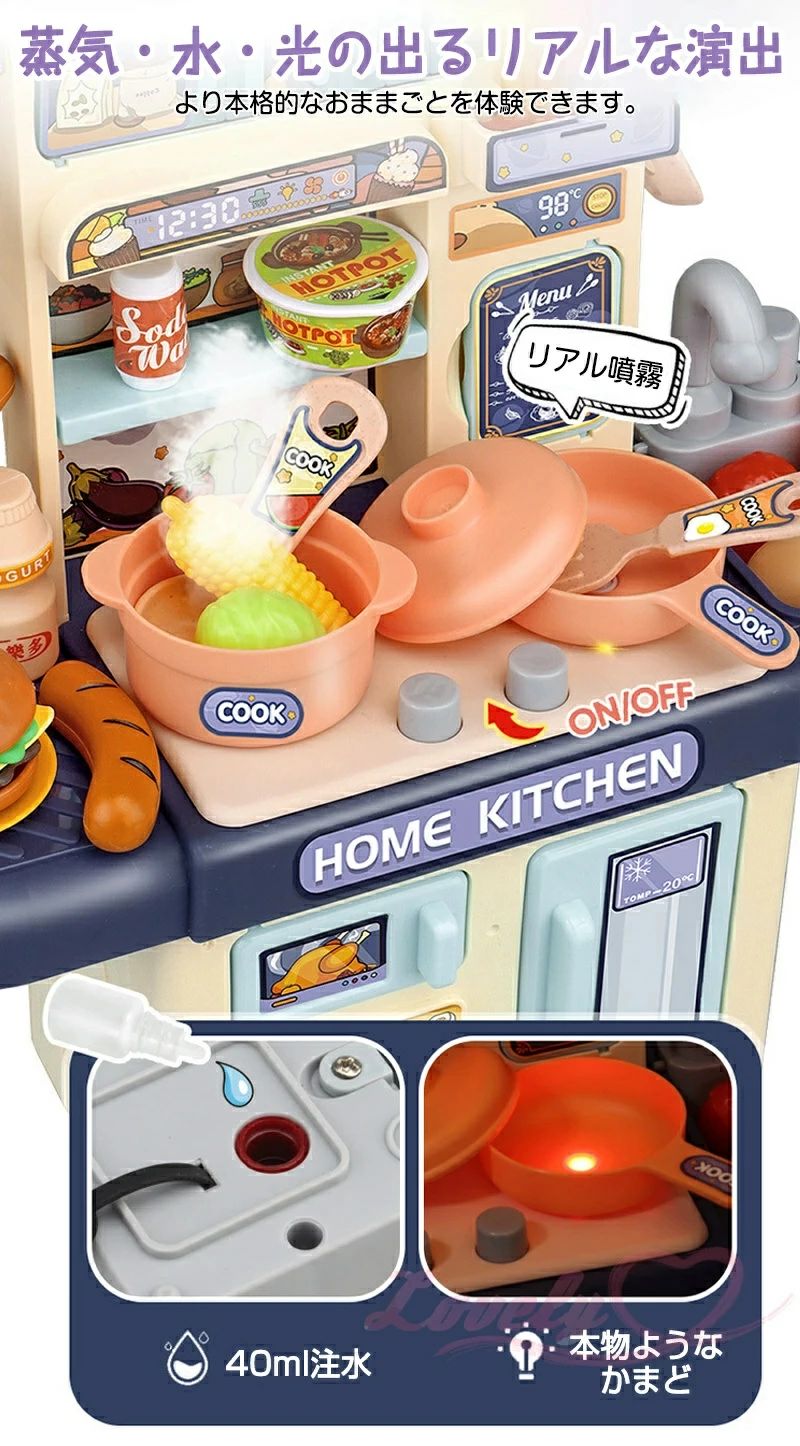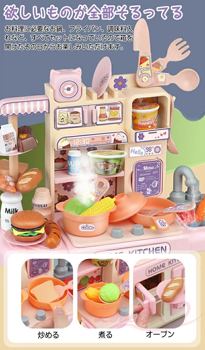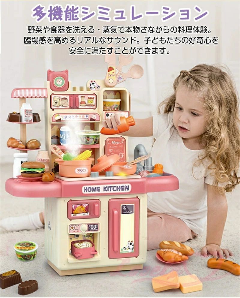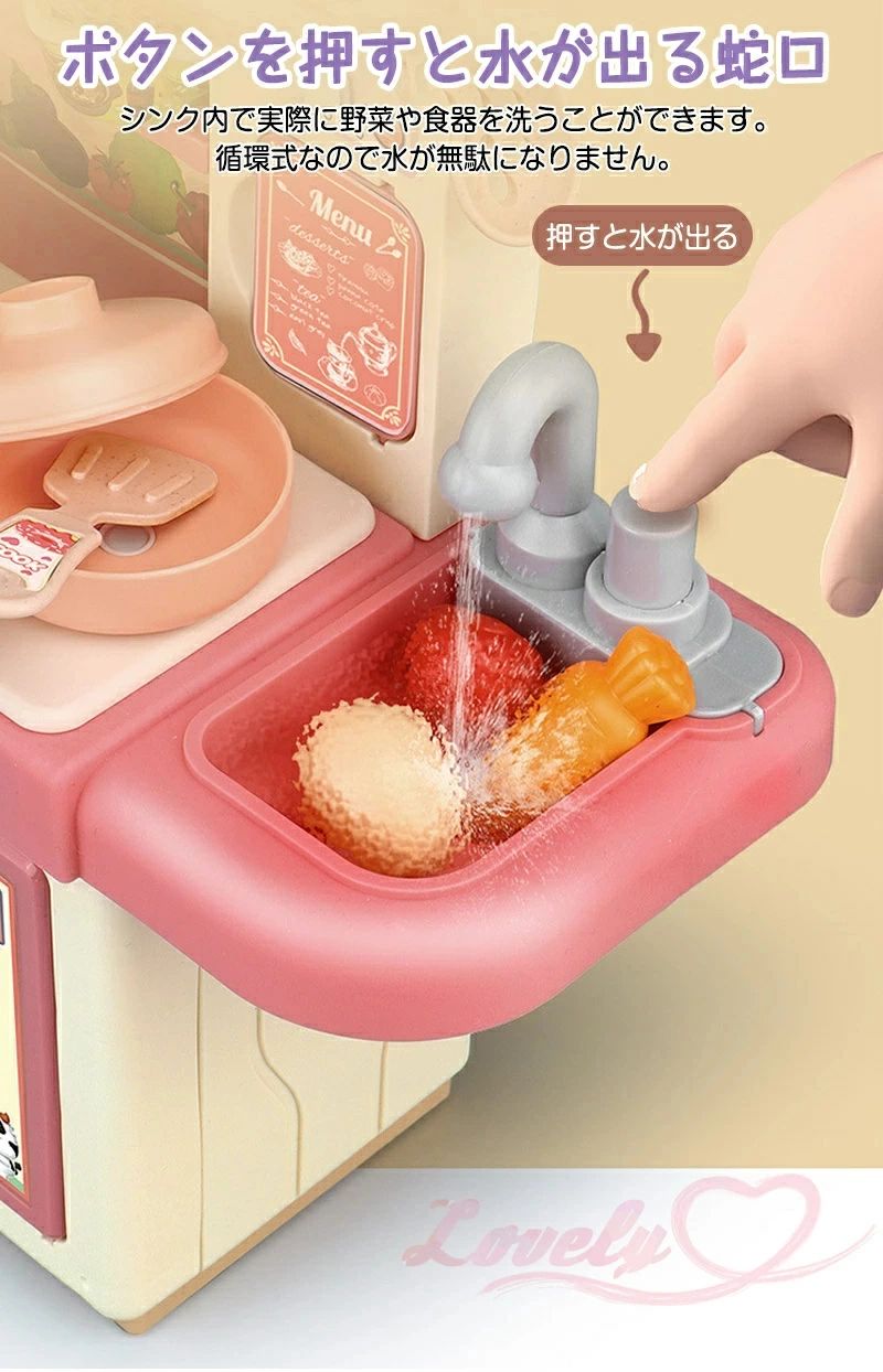 ままごと キッチン ままごとセット 食材 食器 野菜 蛇口 光 水蒸おもちゃ クッキングトイ