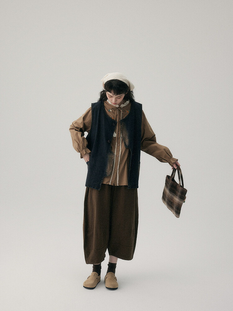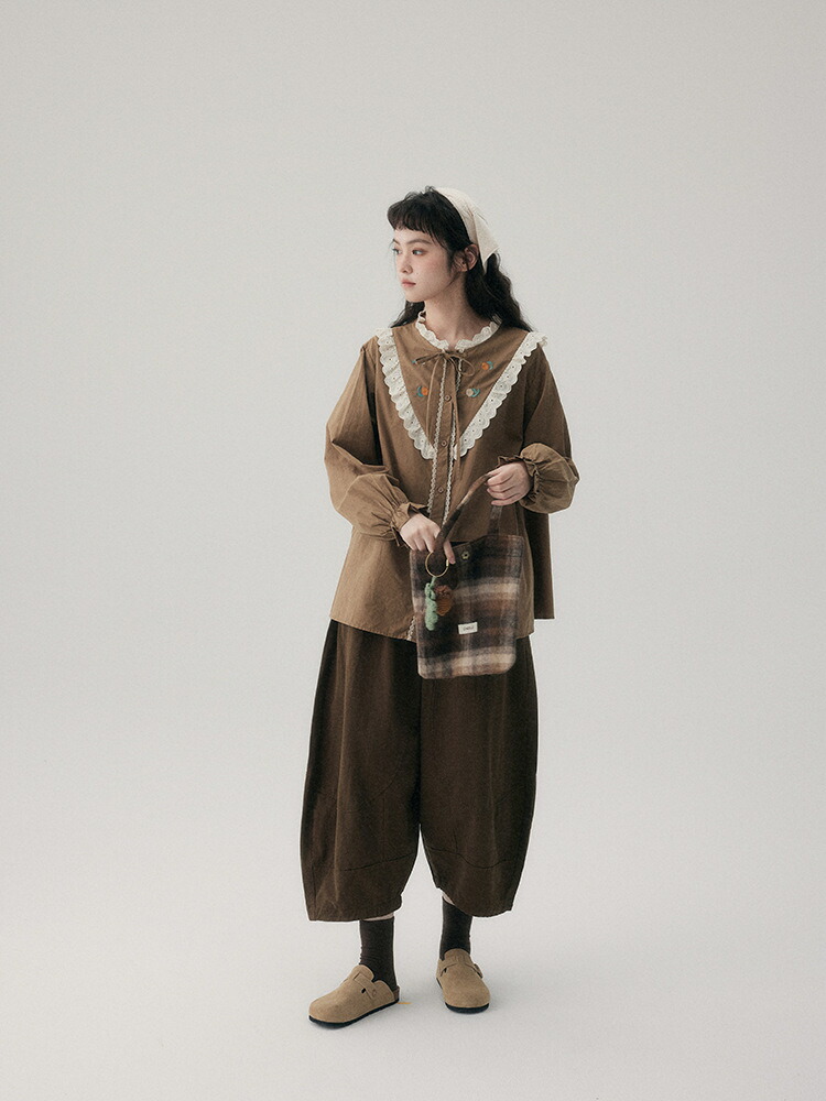 シアースリーブ ドッキングシャツ ボウタイシャツブラウス