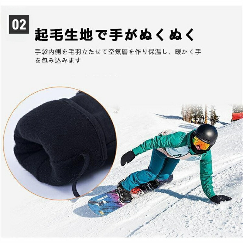 グローブ 手袋 バイク スノーボード スキー スノー メンズ レディース 男女兼用 防水 スマホ対応 ミトン おしゃれ 防寒 自転車 スポーツ 滑り止め 裏起毛 冬