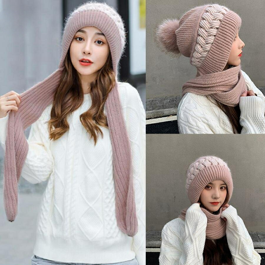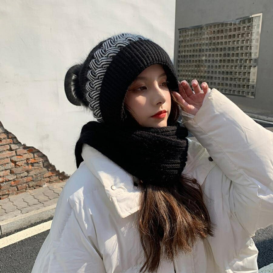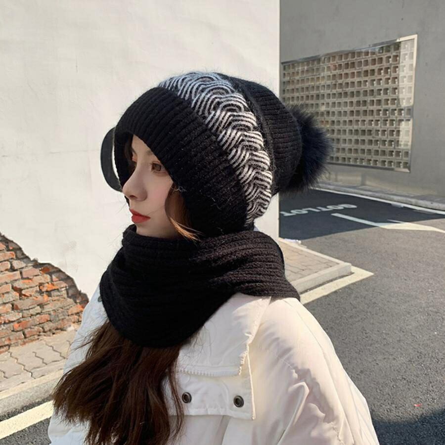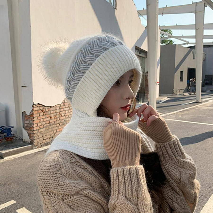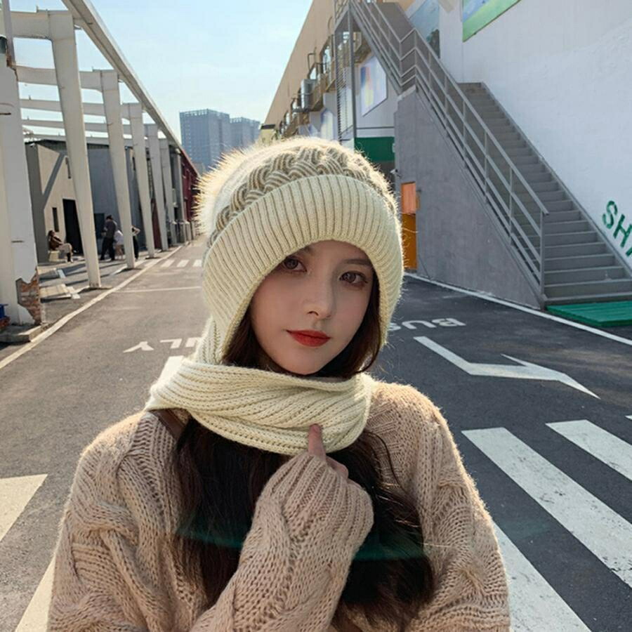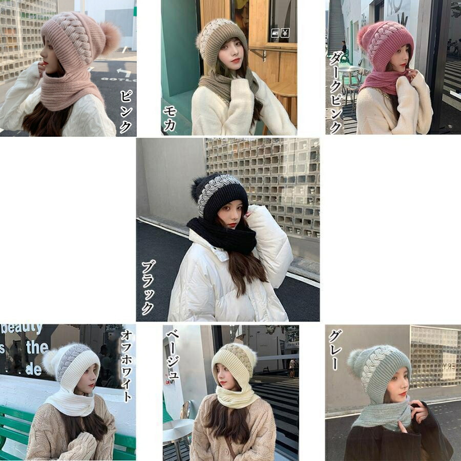 ニット帽子 ニットマフラー 一体型 フード付マフラー秋冬ストール スノーボード スキー 防寒帽子レディース あったか保温