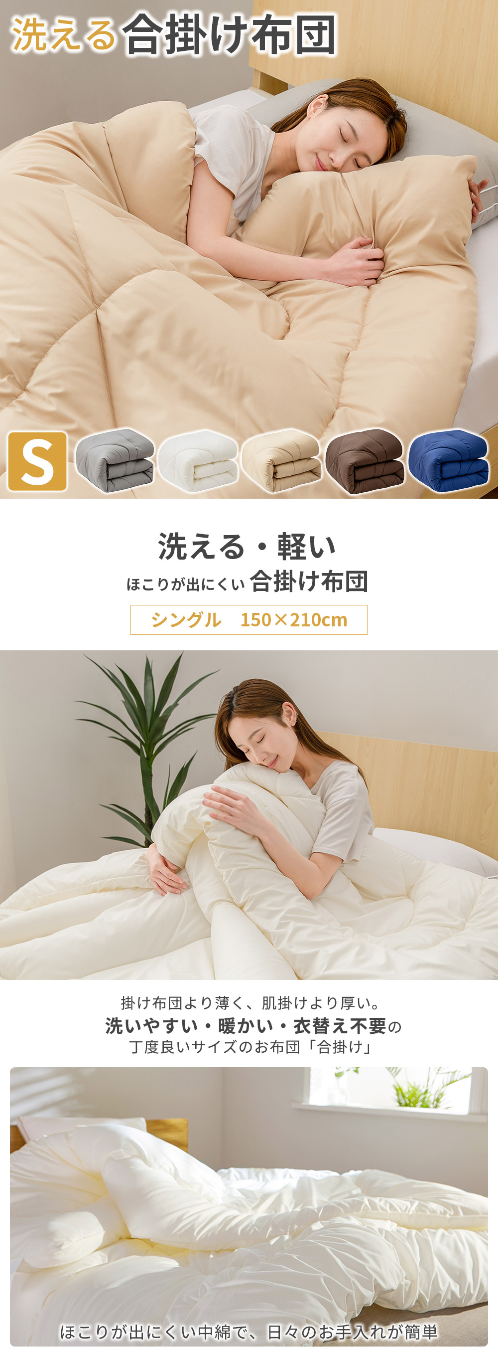 掛け布団 シングル 合掛け布団 洗える