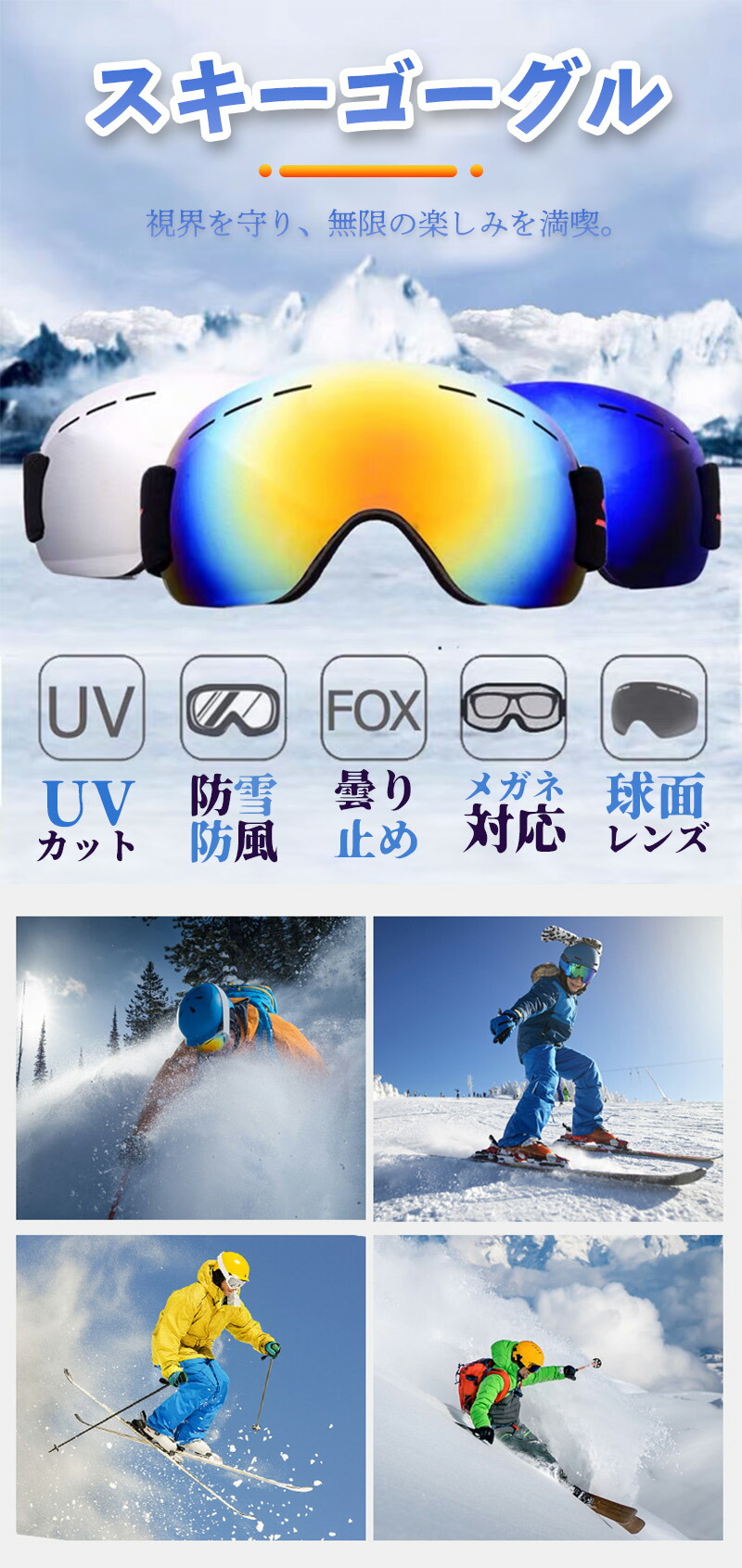 ゴーグル スキー スノボー UVカット