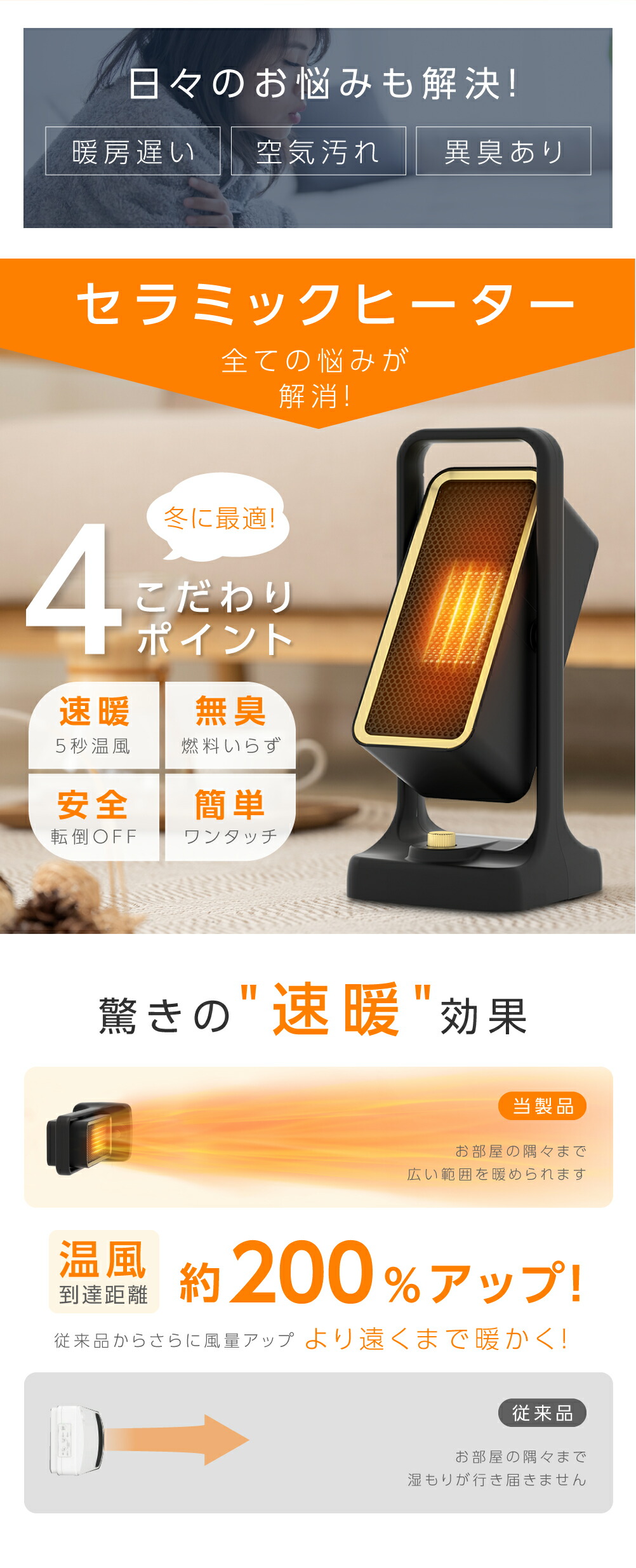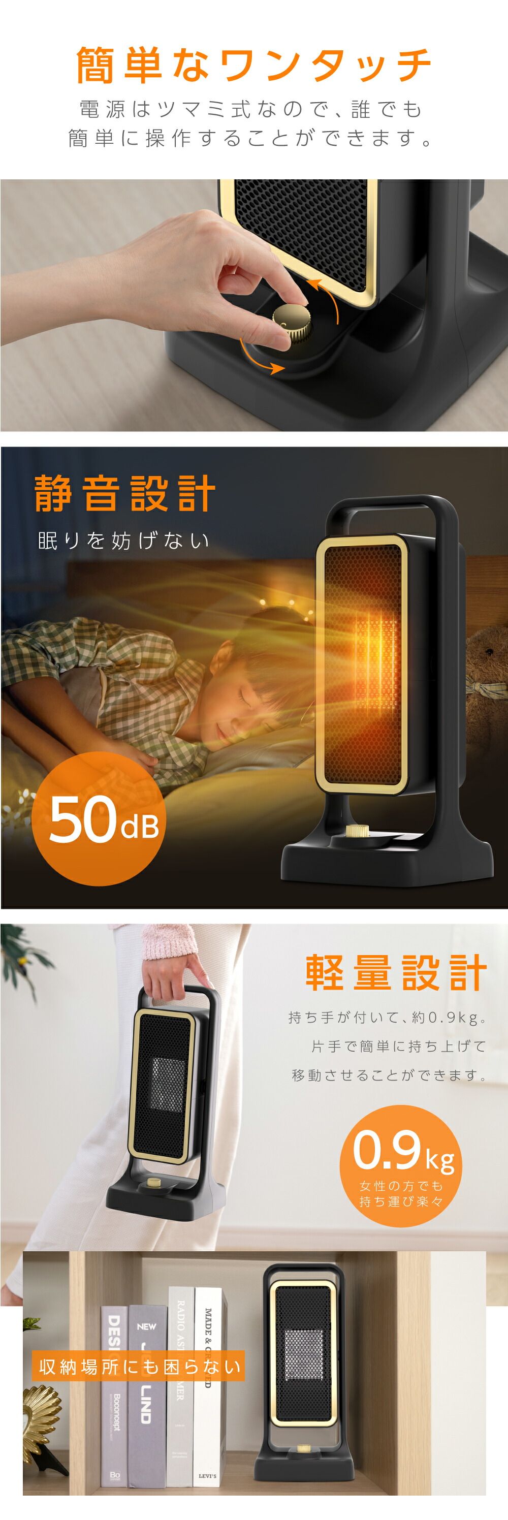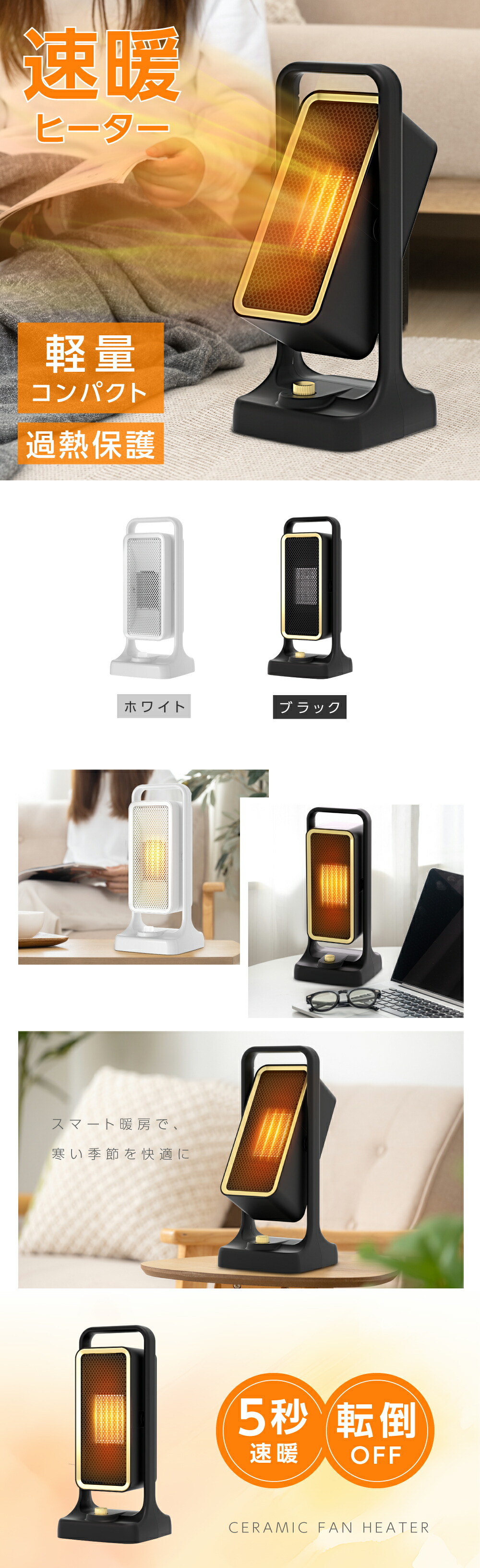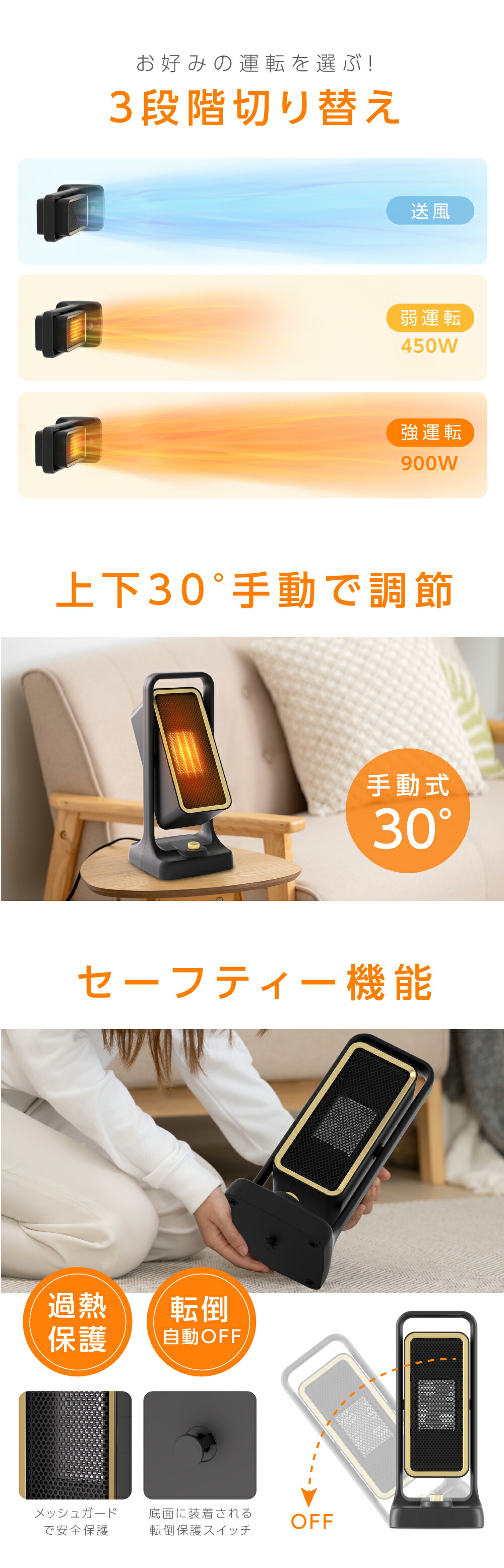 セラミックヒーター ヒーター 電気ストーブ 小型 速暖 暖房 送風 上下首振り 3段階切替 スリム 過熱保護 転倒オフ 足元暖房 おしゃれ 省エネ