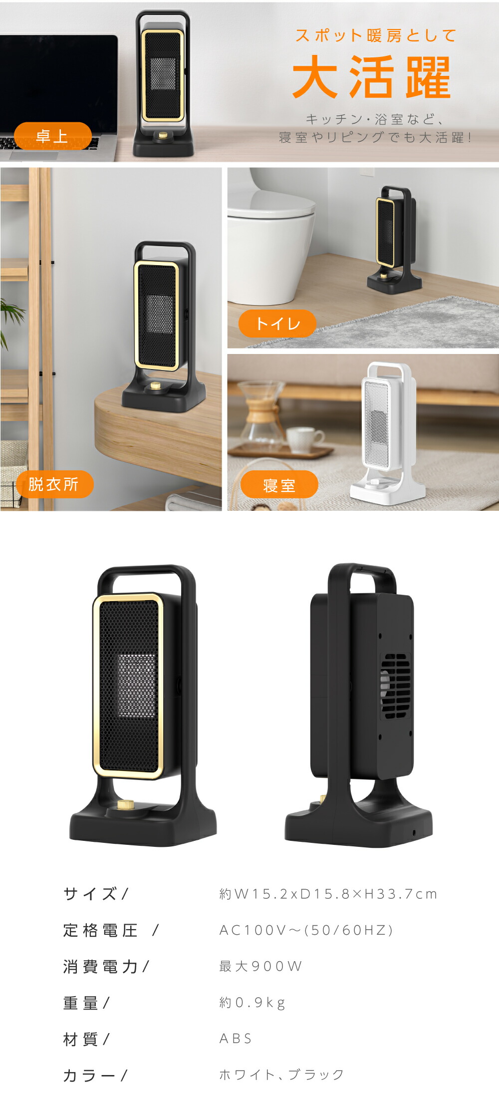 【製品仕様】サイズ:約W15.2xD15.8xH33.7cm / カラー:ホワイト / 材質:難燃性ABS / 消費電力 :最大900W / 重量:約0.7kg / 電源コード長さ:約1.3m