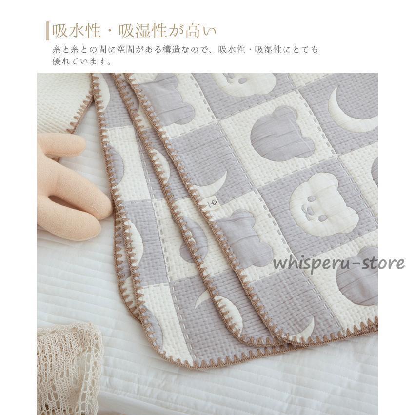 【肌触り】ふんわりと柔らかい肌触りと抜群の吸水性を持つ、ブランケットにの生地です。生地は厚めのものを選ぶと、ふんわり感が持続するのでおすすめです。ふんわり優しい肌触りはデリケートな赤ちゃんに