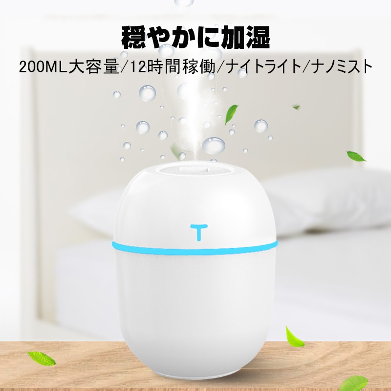 加湿器 スプレー 卓上 スチーマー 超音波式 噴霧 USB 大容量 200ml 卓上加湿器 除菌 LEDライト 小型 静か 静音 コンパクト 軽量 持ち運び便利 オフィス 家庭用