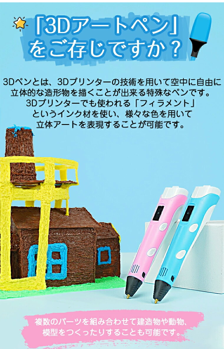 3Dペン 立体絵画 メント 5m×10色 3Dアートペン DIY 手作り 想像おもちゃ 知育玩具 学習玩具 お絵かき