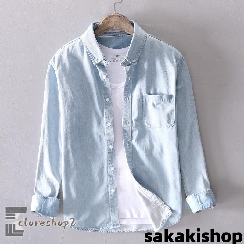 長袖シャツ メンズデニムシャツ 春夏 デニム ワイシャツ 綿シャメンズファッション トップス カジュアルシャツ