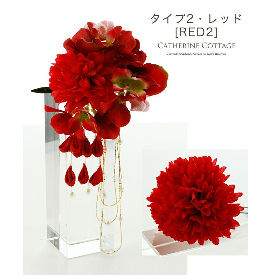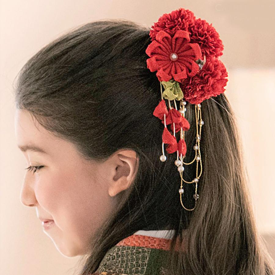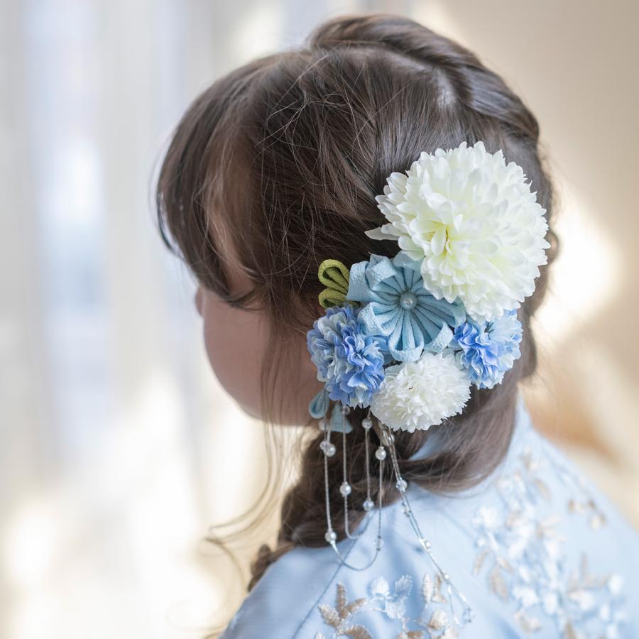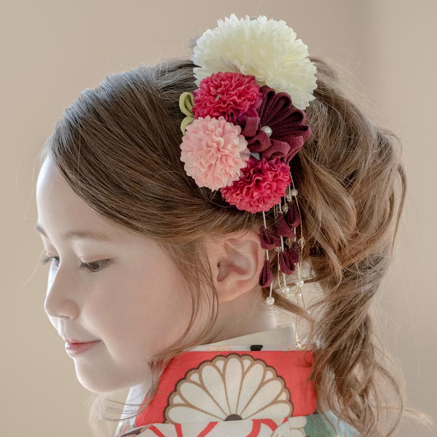 目玉セール|和装 お花の髪飾り2点セット ヘアアクセサリー 和小物 ピンク 紫 赤 水色 白 花 マム ちりめん ヘアクリップ TAKキャサリンコテージ