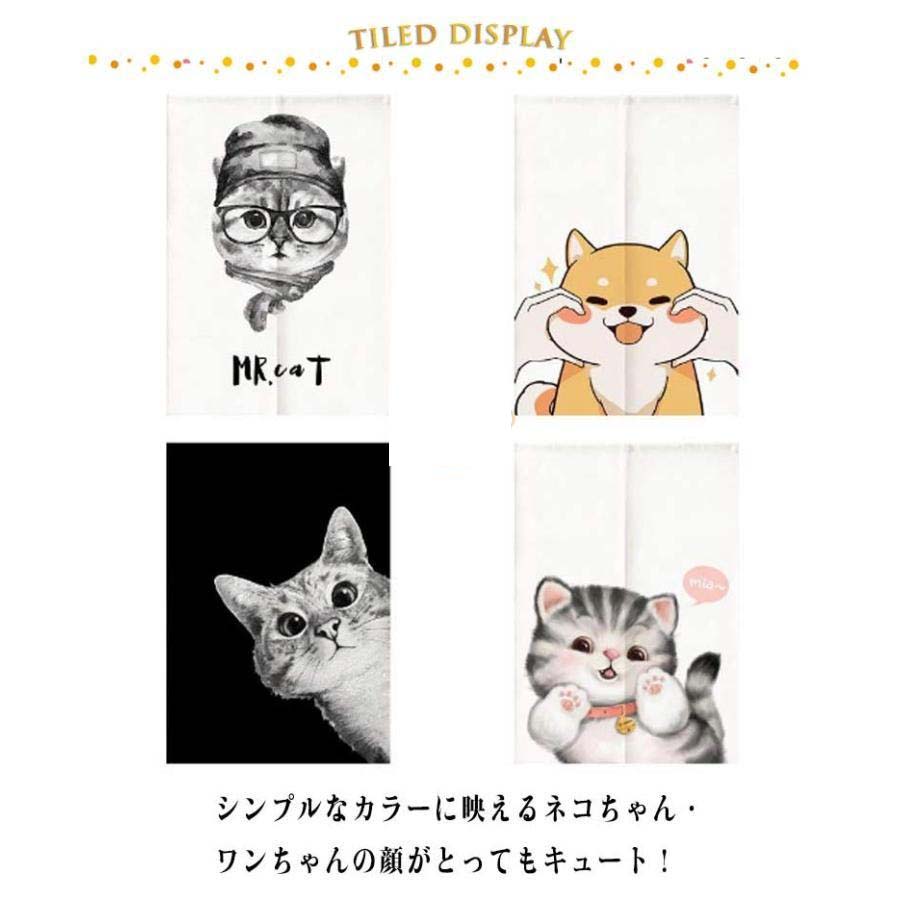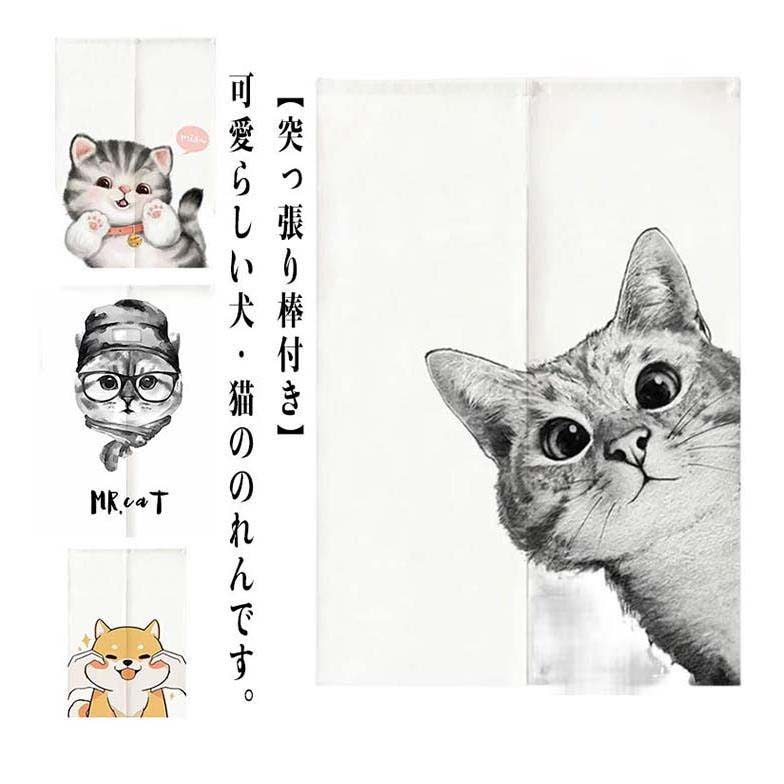 突っ張り棒付き のれん 暖簾 犬柄 猫