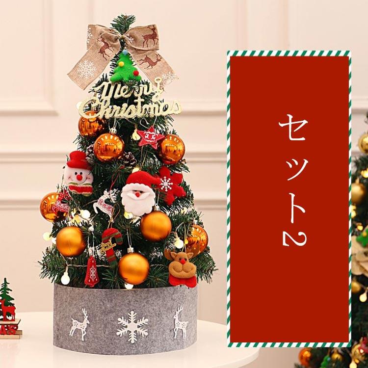 卓上 クリスマスツリー ミニツリー 60cm LEDイルミネーションライト DIY クリスマス飾り フルセット オーナメント付き 人工 クリスマスつり