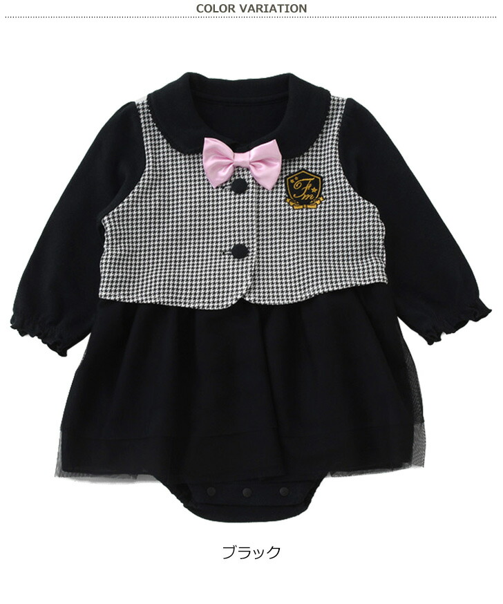 ワンピース風千鳥柄ドッキング長袖ロンパ