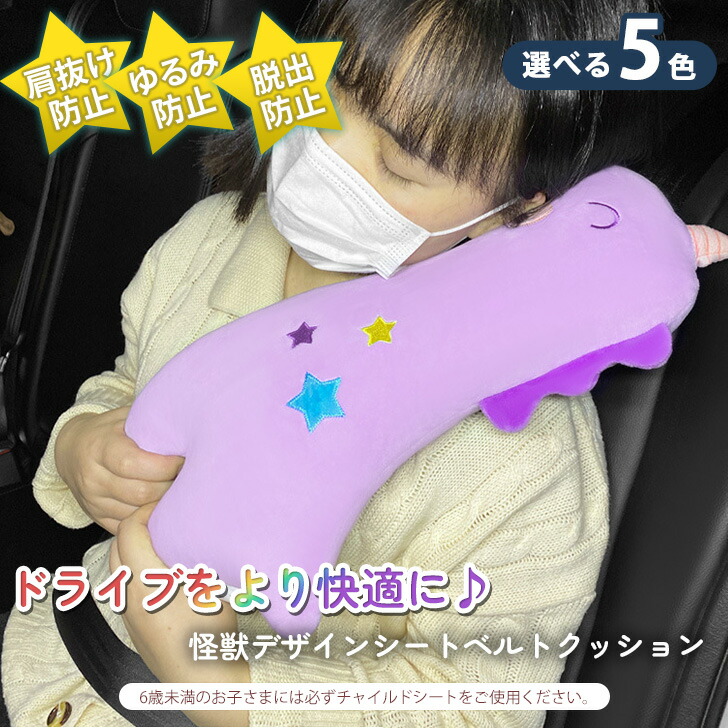 選べる5種 怪獣デザイン シンプル シートベルト クッション シートベルトクッション シートベルト枕 枕 シートベルトカバー チャイルドシート ネック ピロー 抱き枕 キッズ 子供 こども 車用品 カ