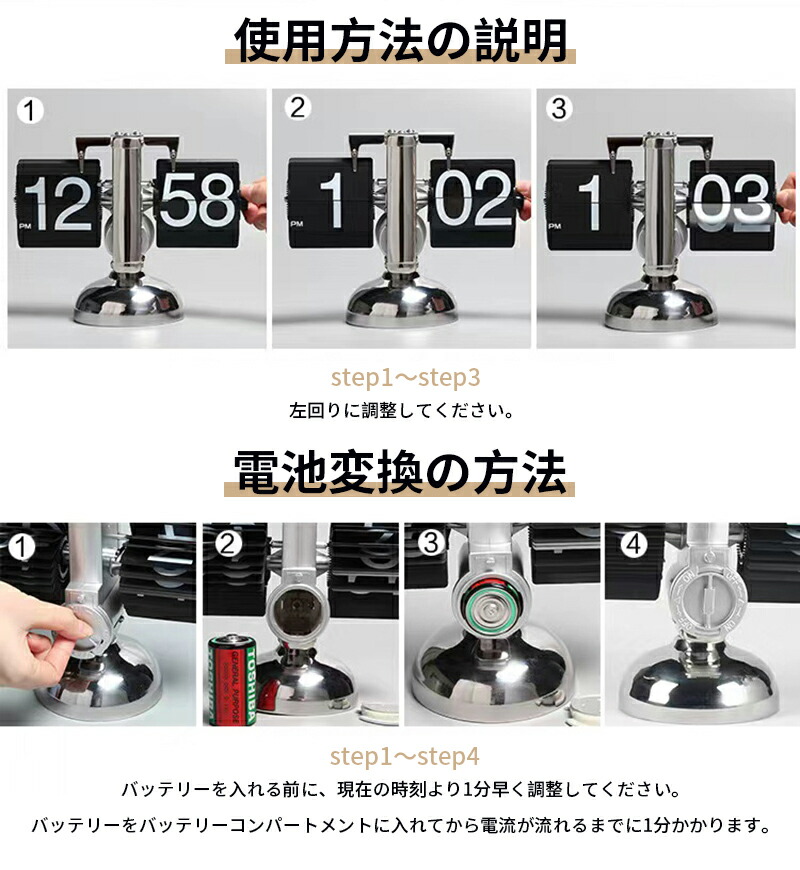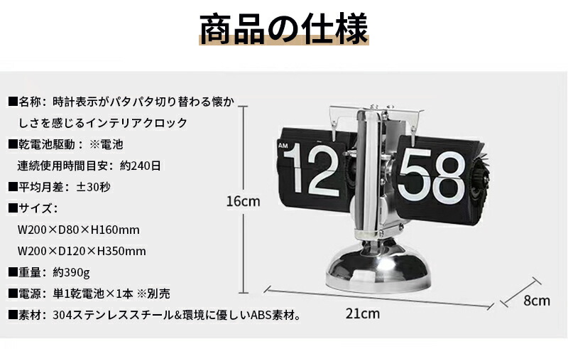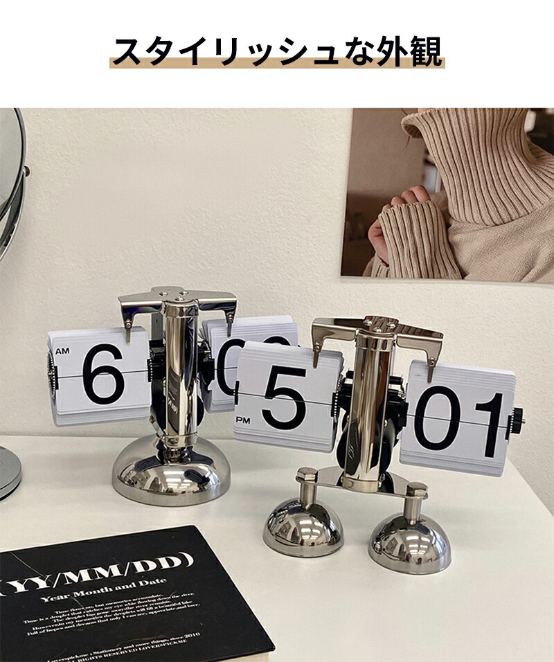 ステンレス フリップクロック 置き時計