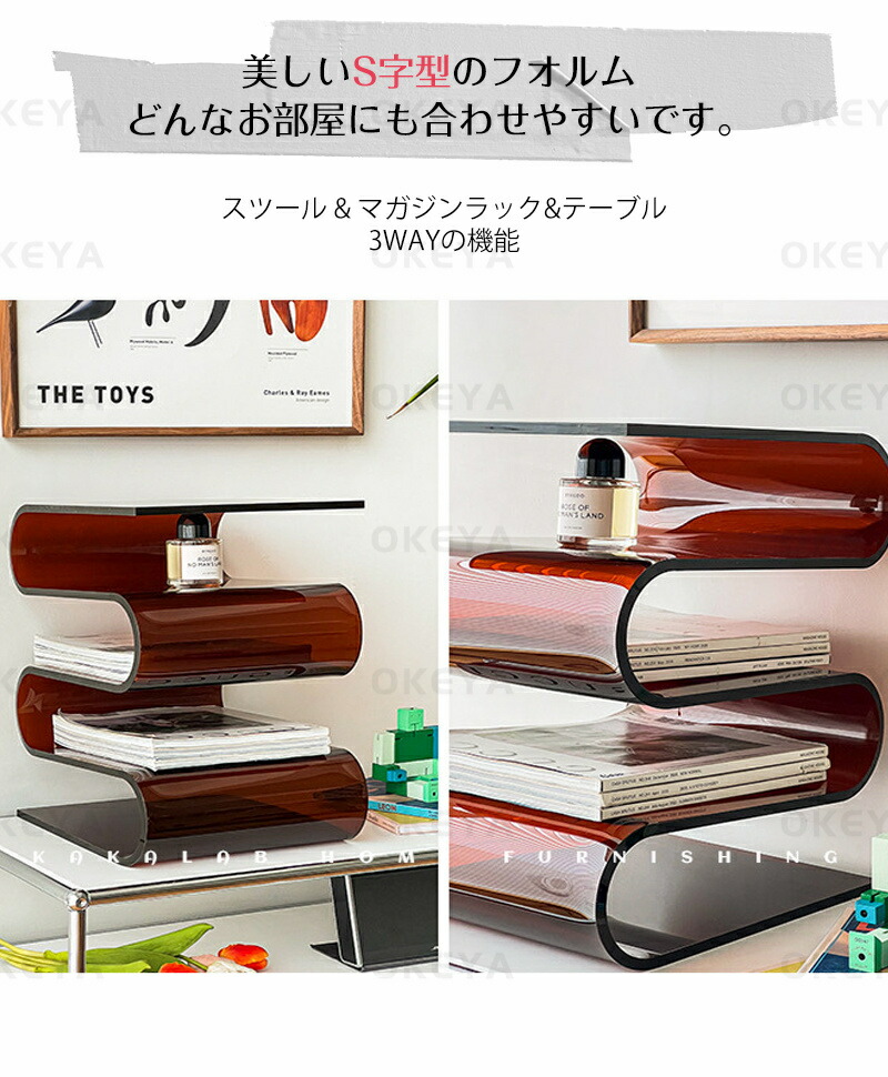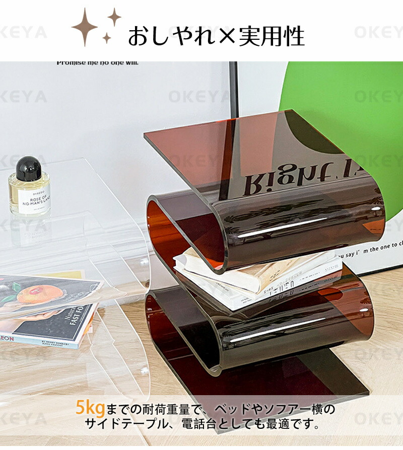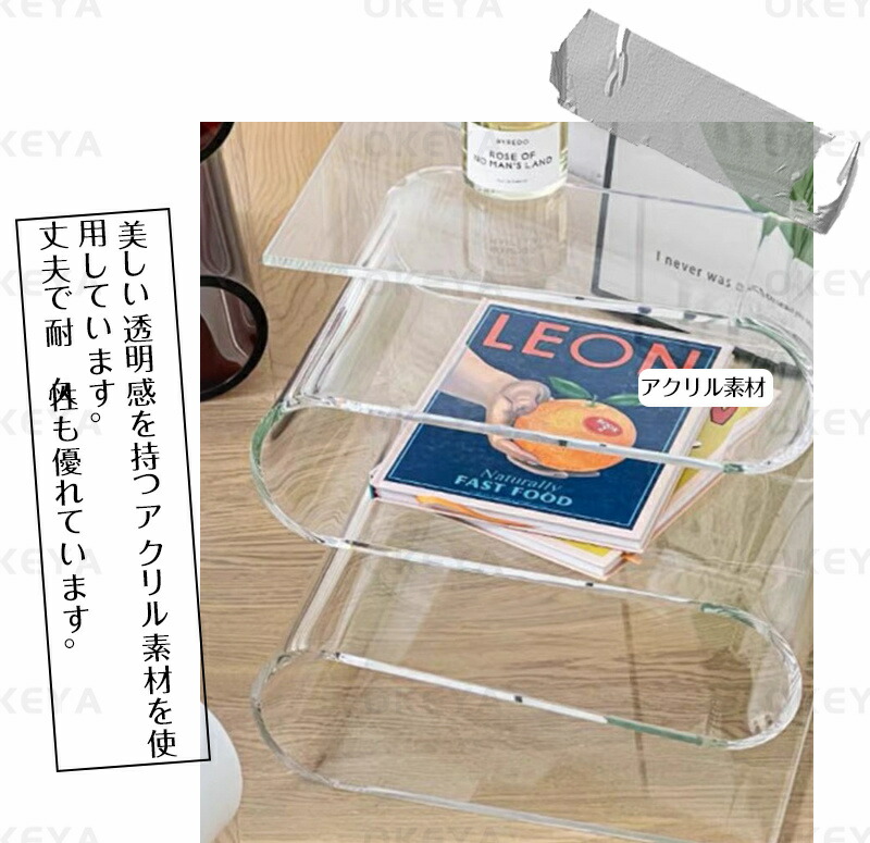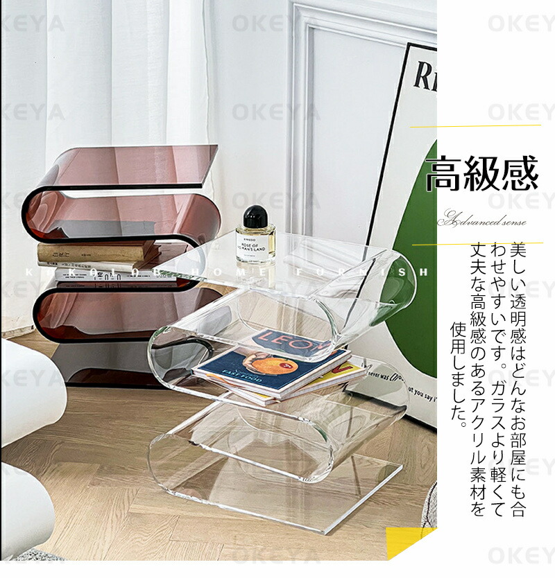 サイドテーブル アクリル S字型 透明