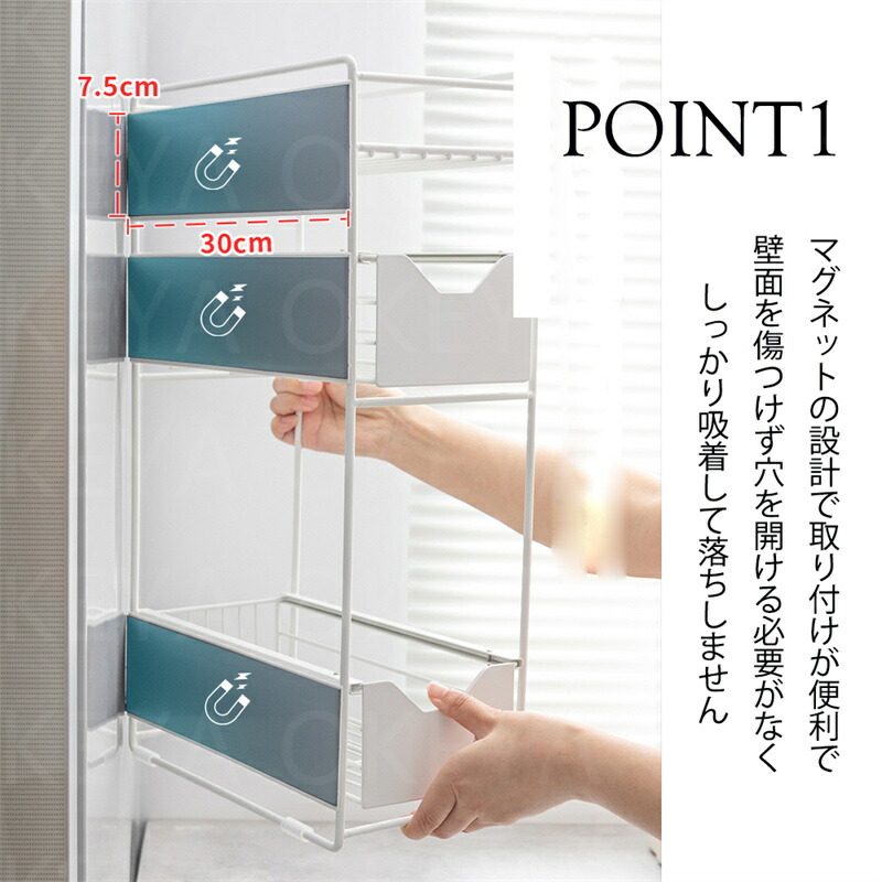 洗濯機横マグネット収納ラック 引き出し 洗濯機 ラック 3段式 収日用品雑貨 文房具 手芸 生活雑貨 収納用品 マグネットラック