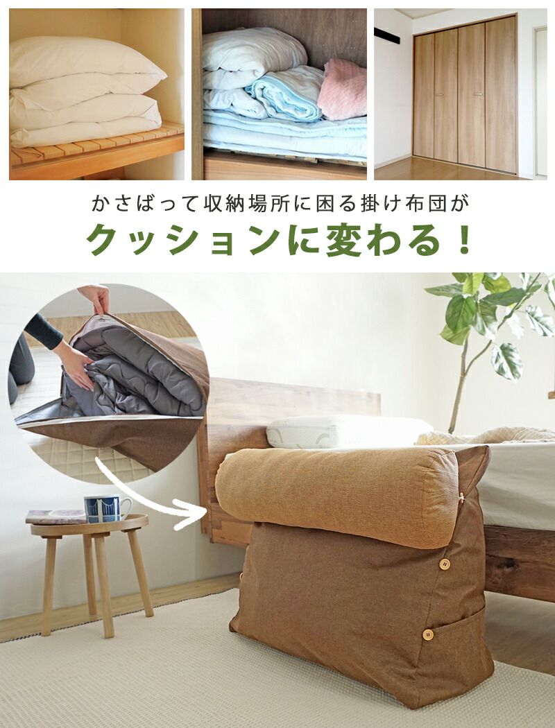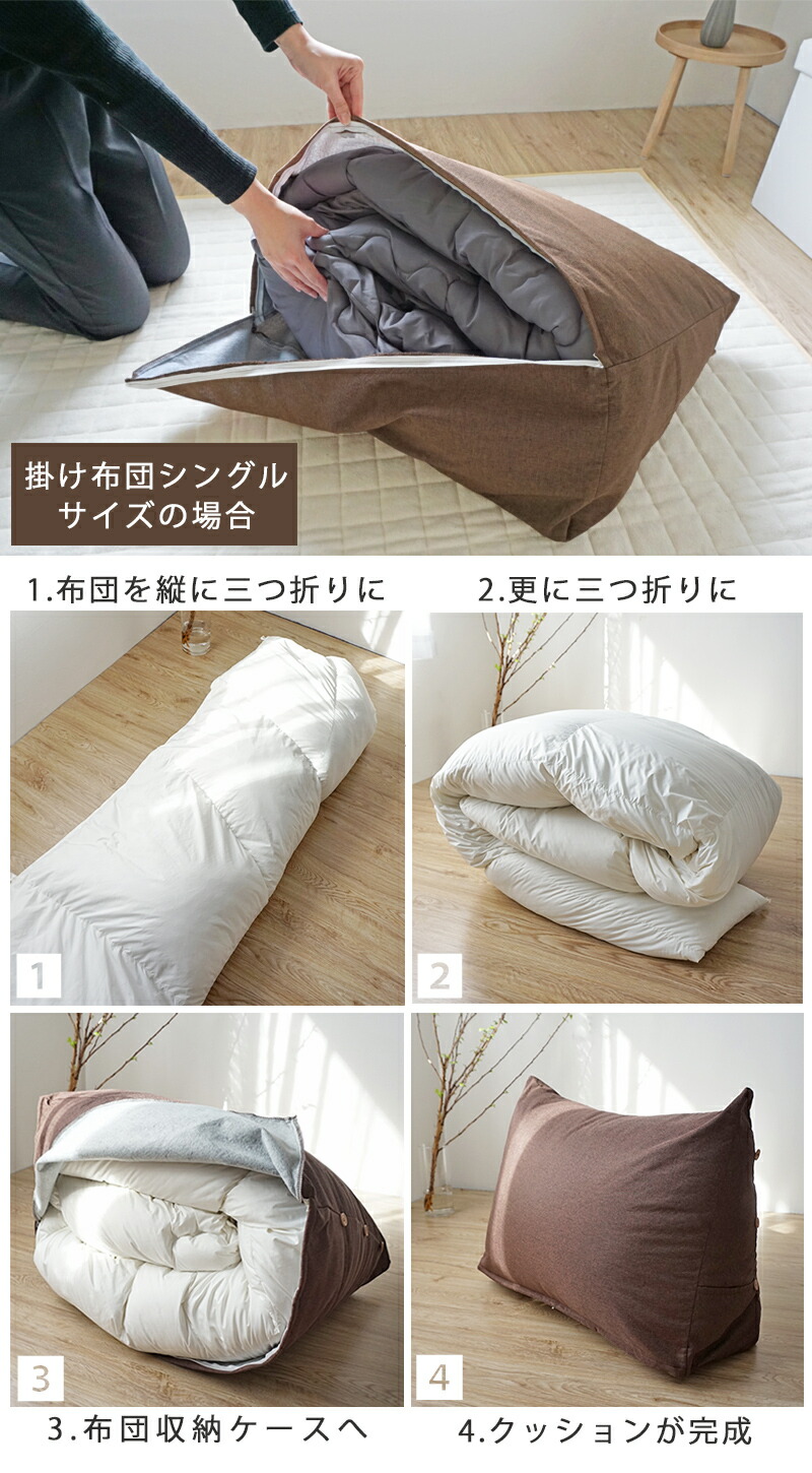 布団収納袋 クッション 背もたれ 4way クッションになる シングル 背もたれクッション 背もたれになる 三角クッション