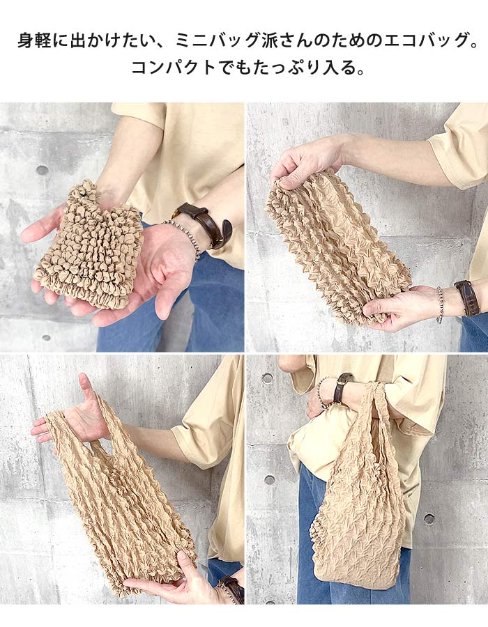 エコバッグ コンパクト トートバッグ レディース 絞り素材 伸縮バッグ 小物 ブランド雑貨 バッグ レディースバッグ トートバッグ