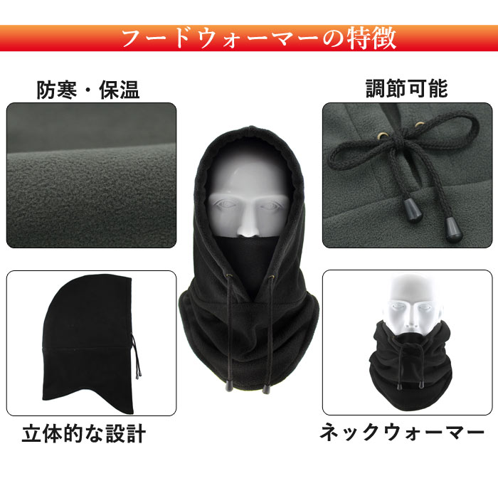フードウォーマー バラクラバ レディース メンズ ネックウォーマー フェイスウォーマー フェエイスマスク 3way