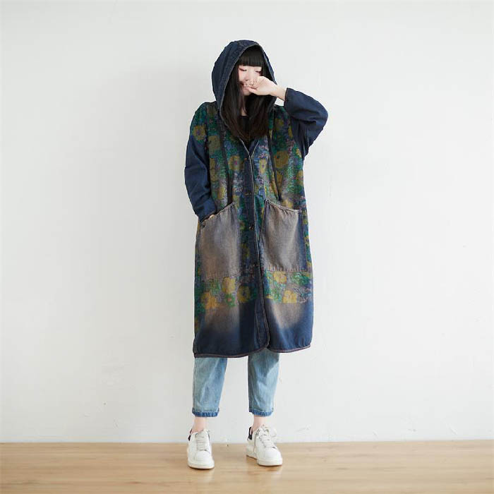 デニム コート フード付き レディース