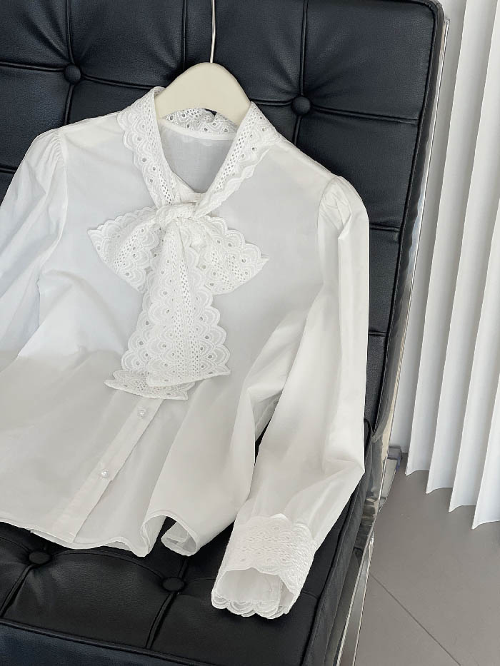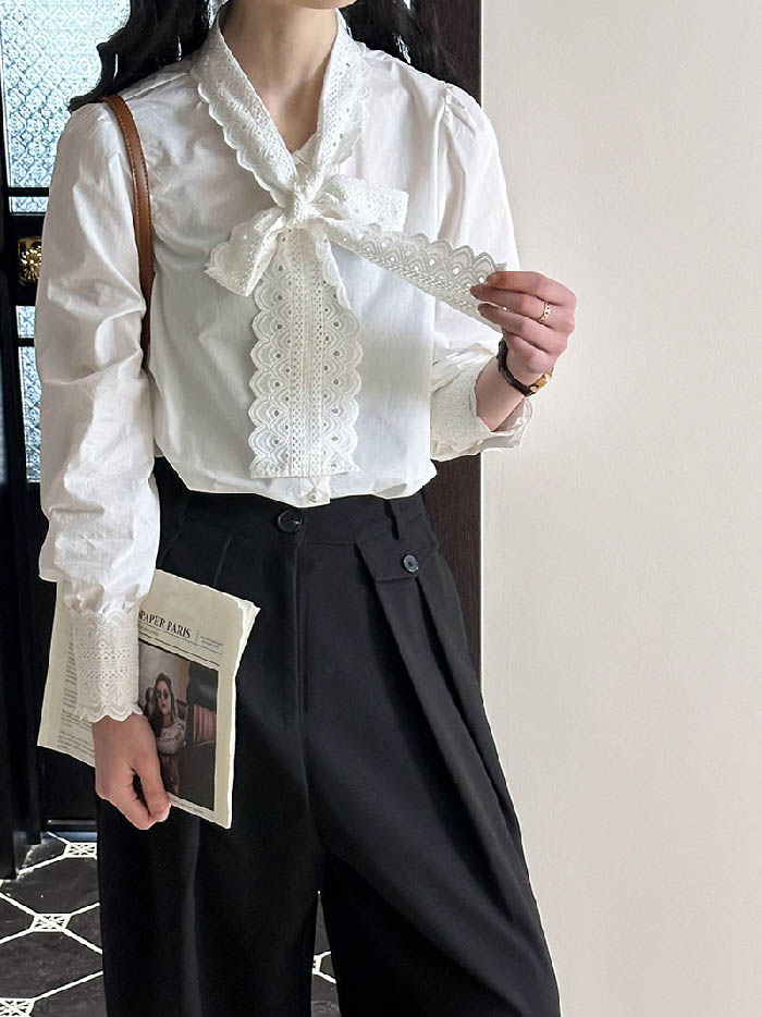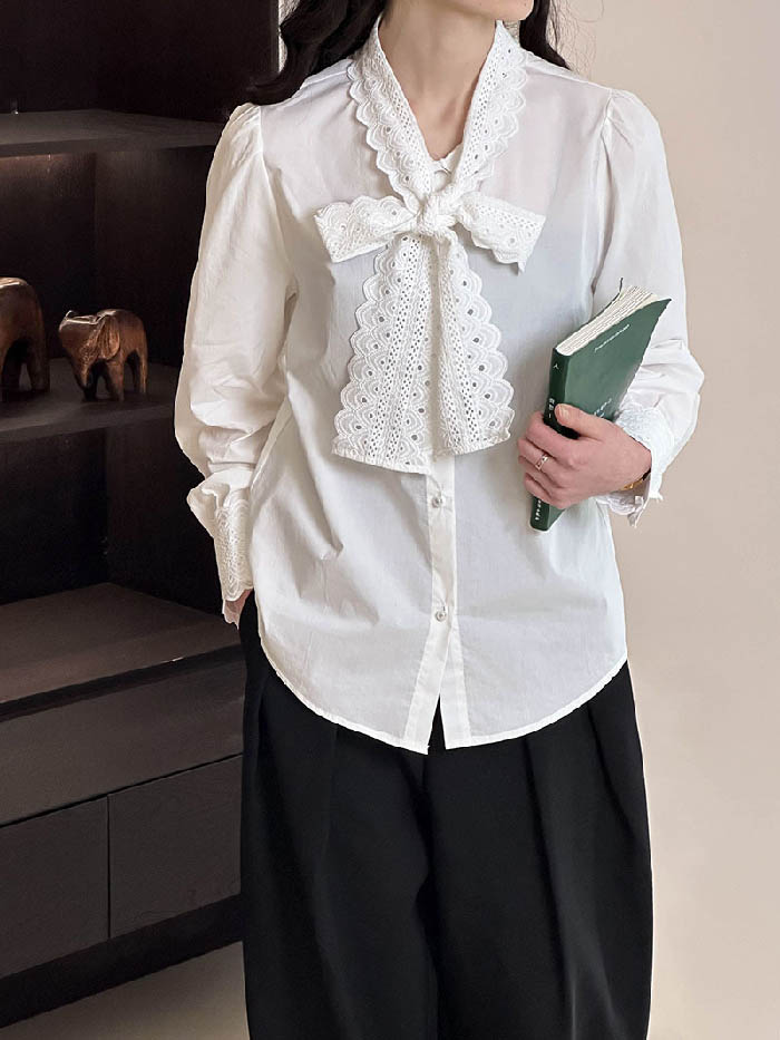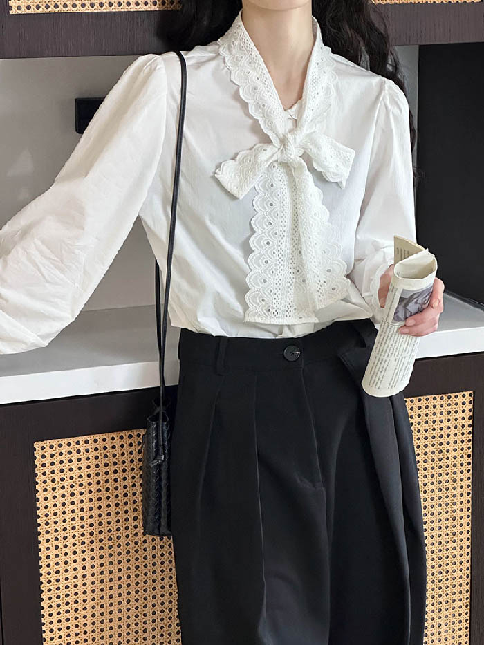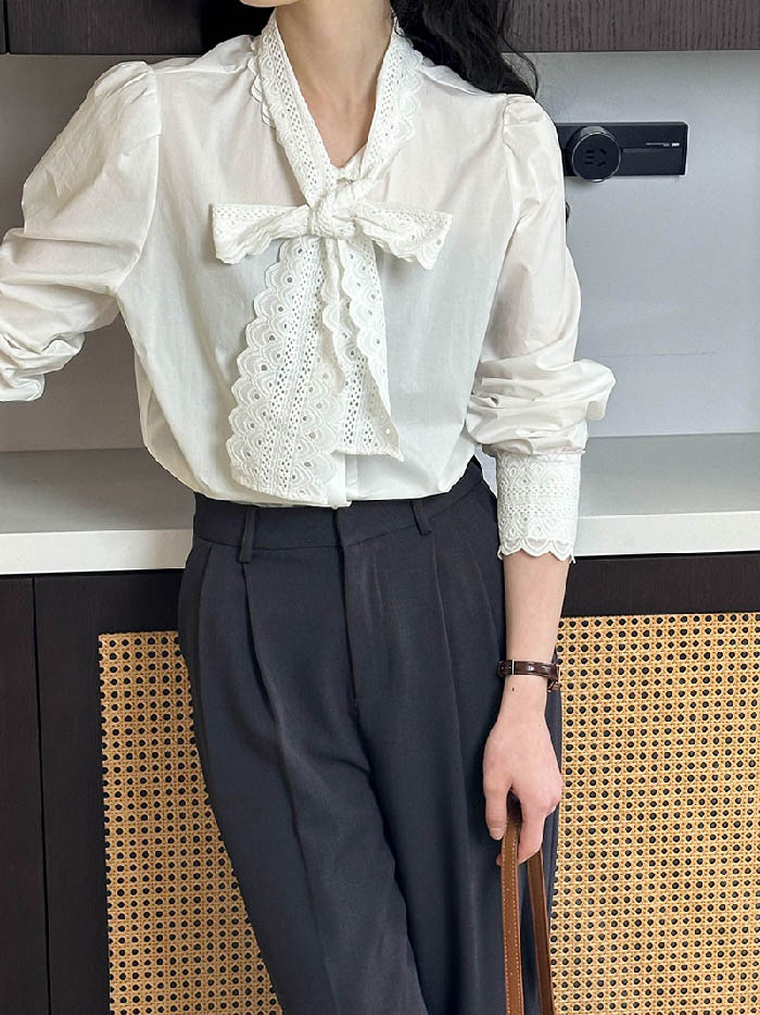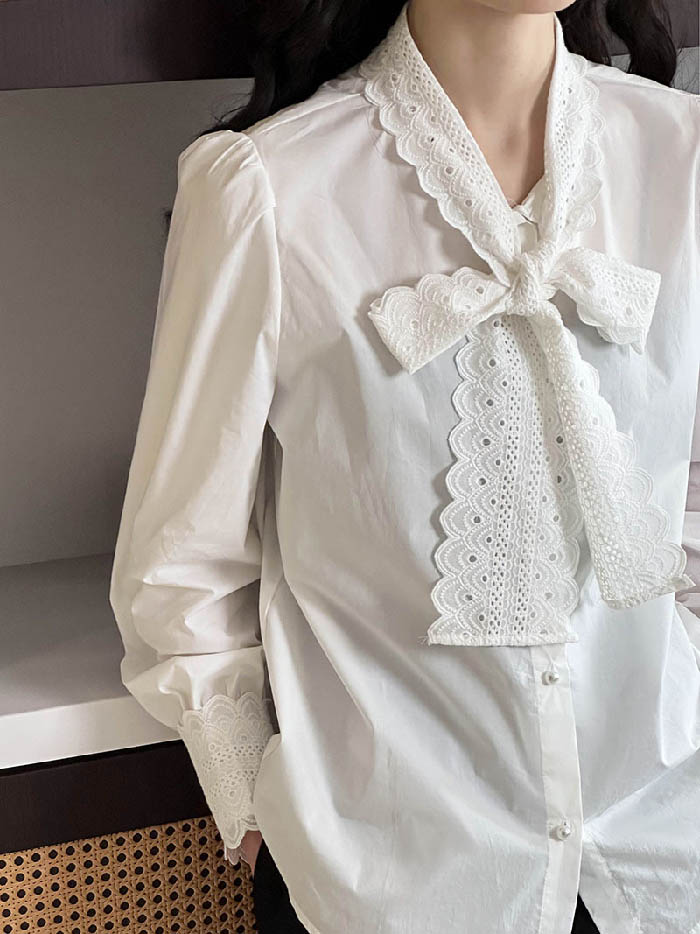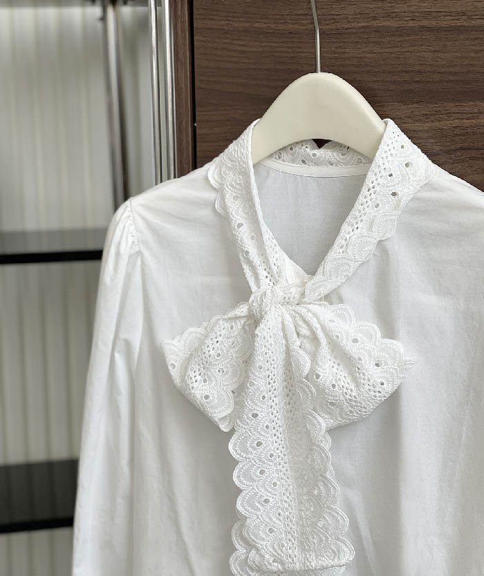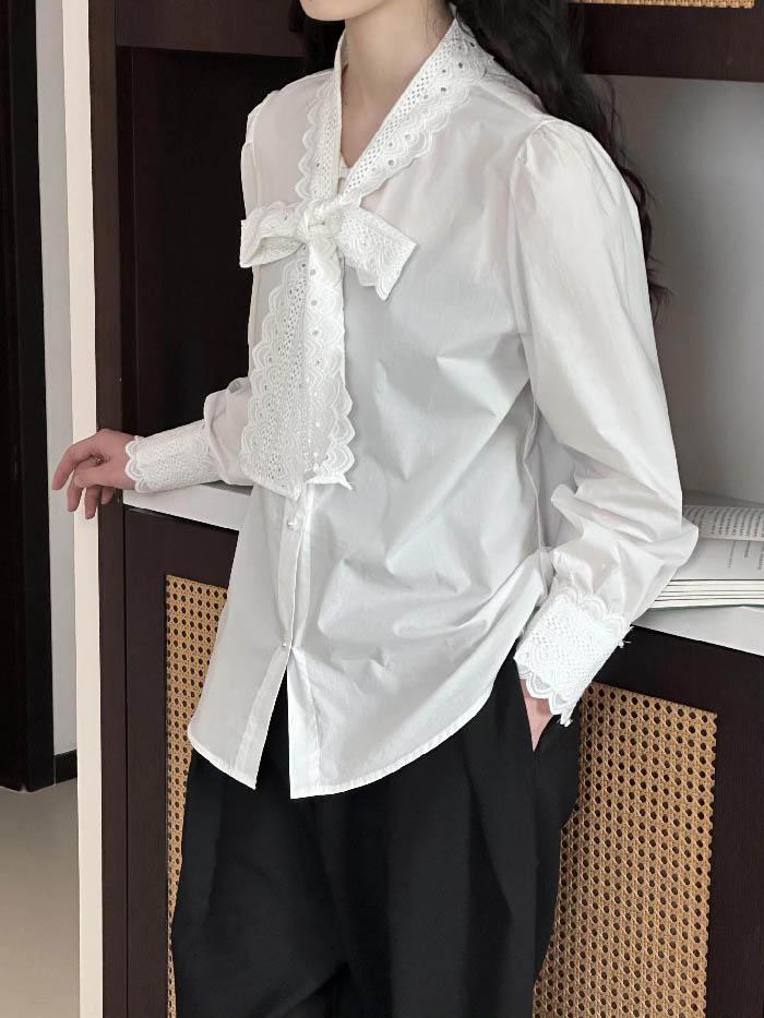 シアースリーブ ドッキングシャツ ボウタイシャツブラウス