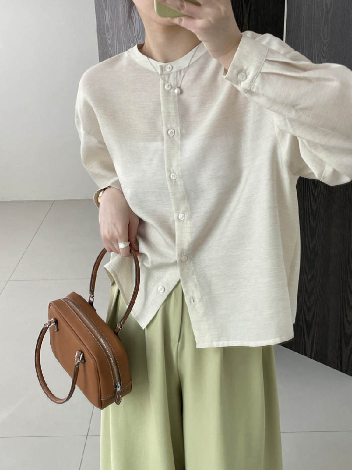 シャツ ブラウス レディース ノーカラ