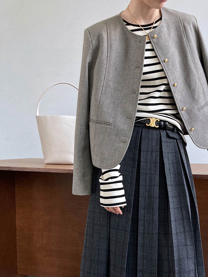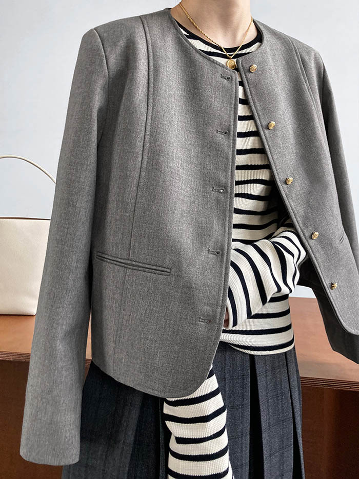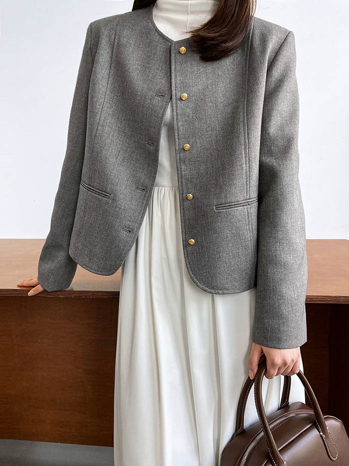 ノーカラー ジャケット レディース 春