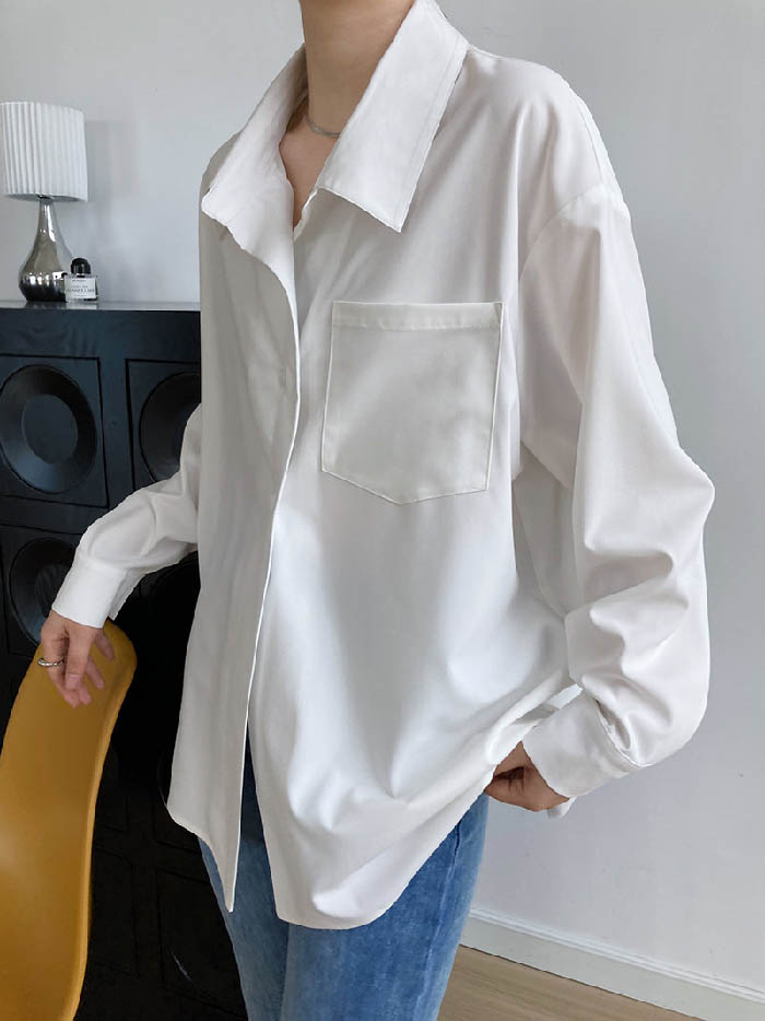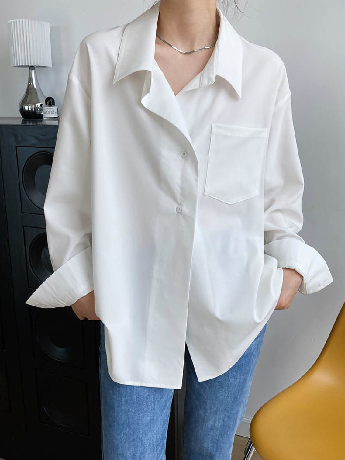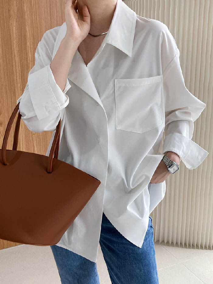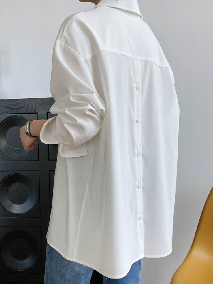 シャツ レディース 長袖 バックボタン