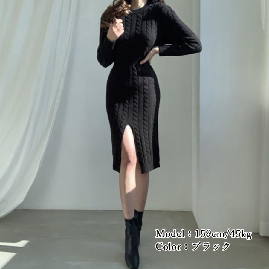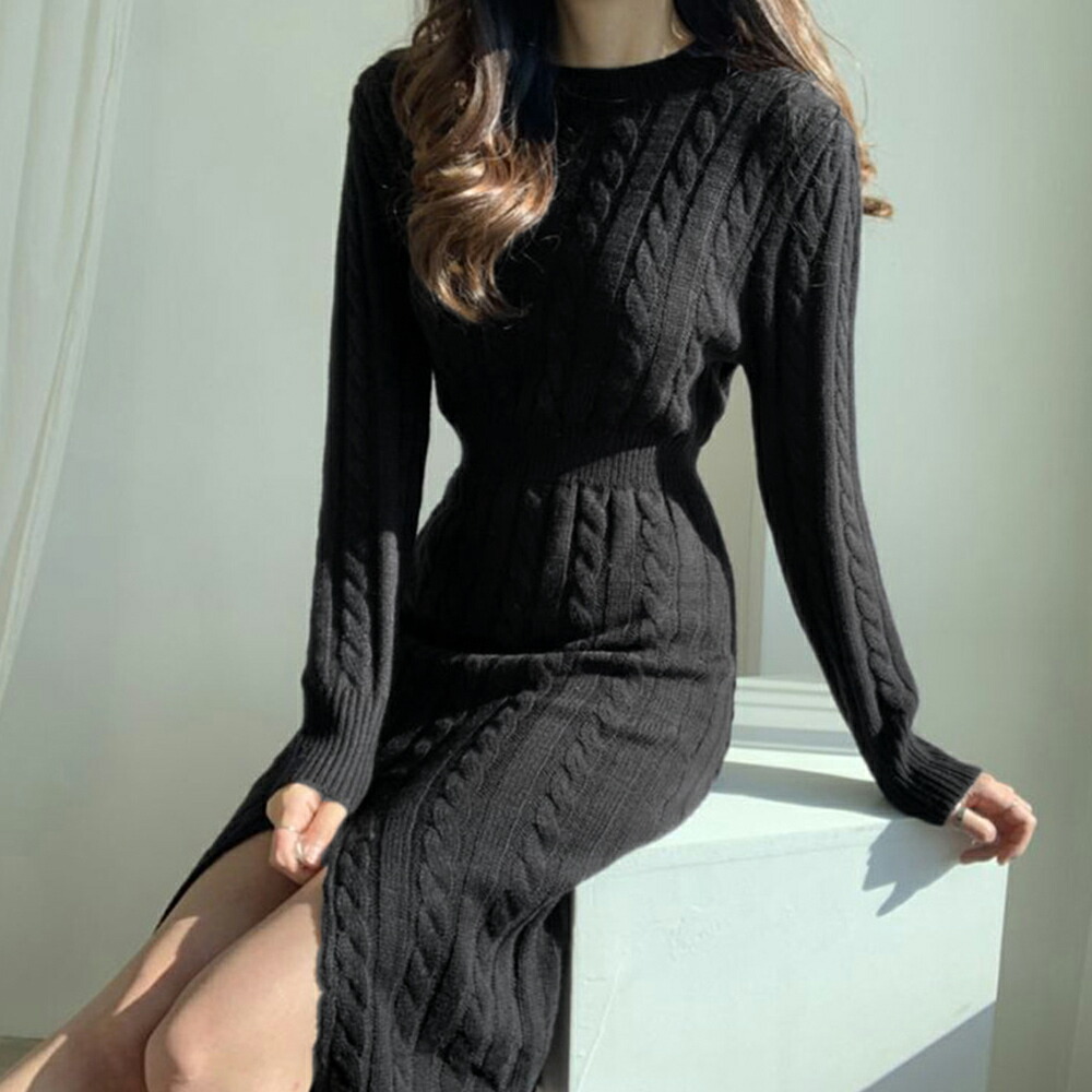 前後2way ニットワンピース 深スリ