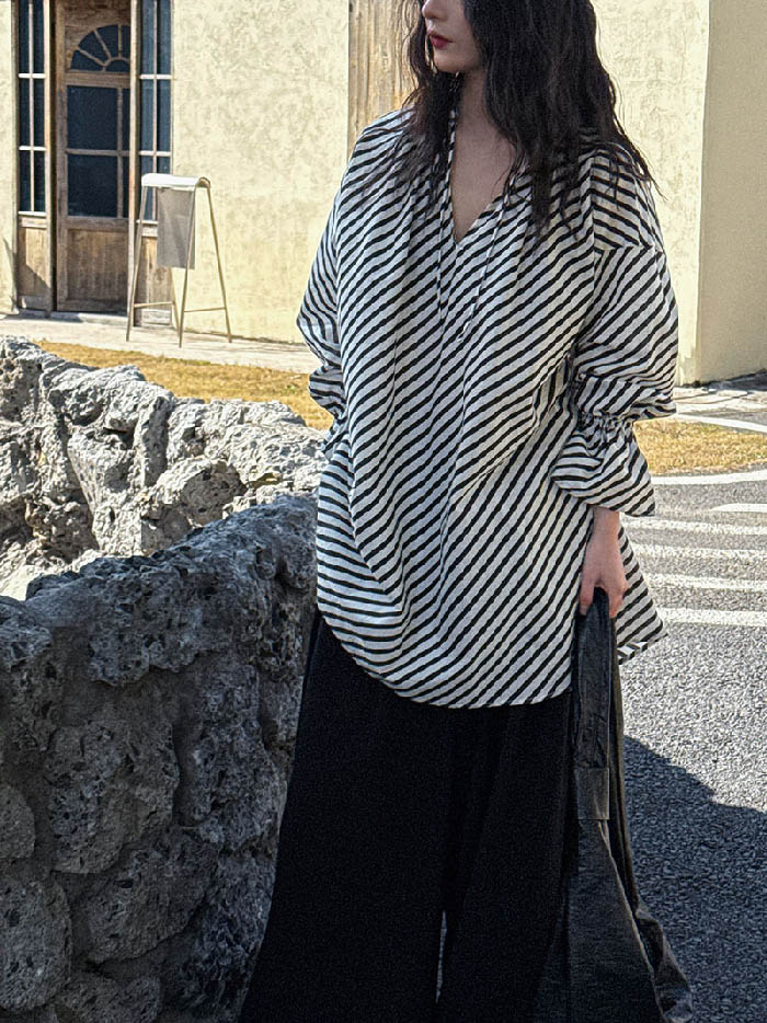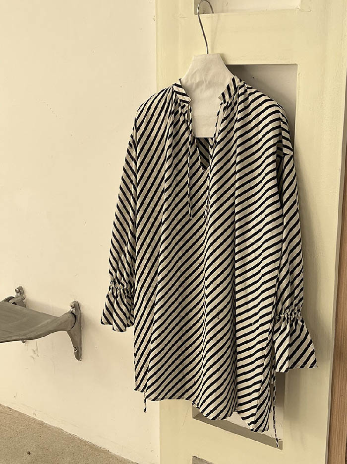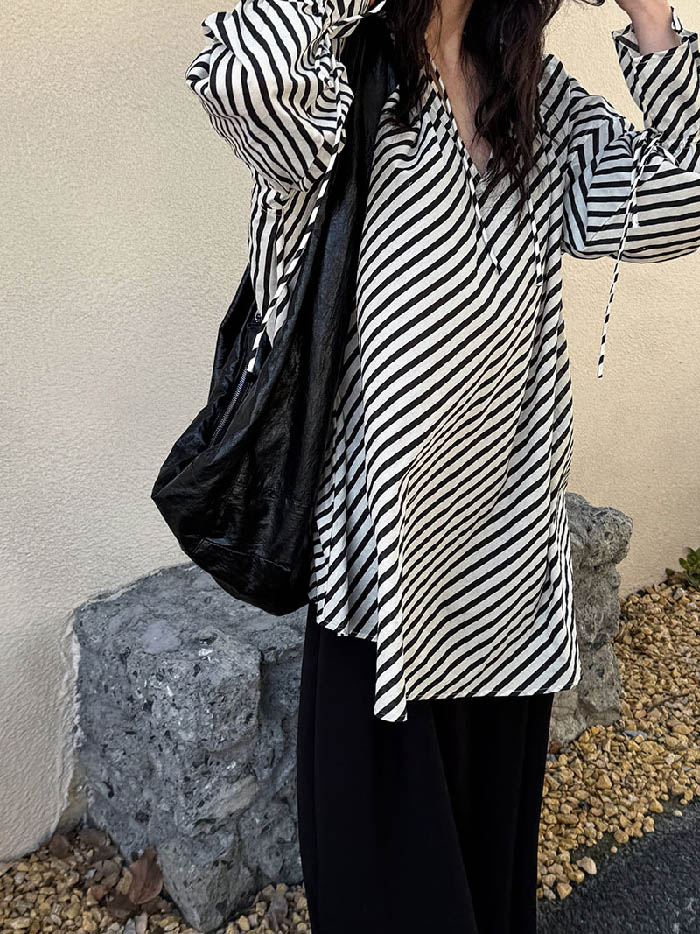 シアースリーブ ドッキングシャツ ボウタイシャツブラウス