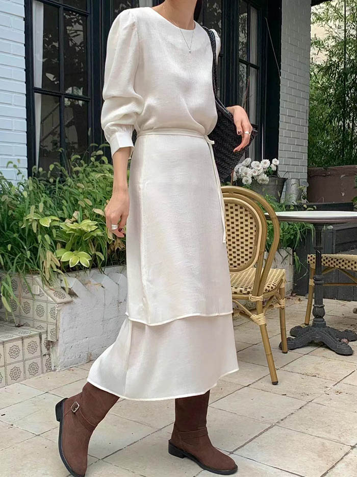 シアースリーブ ドッキングシャツ ボウタイシャツブラウス