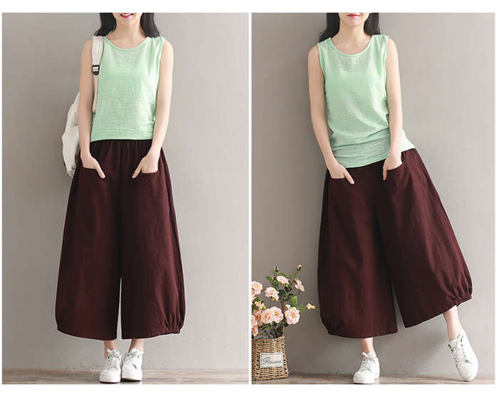 ワイドパンツ レディース 9分丈 春