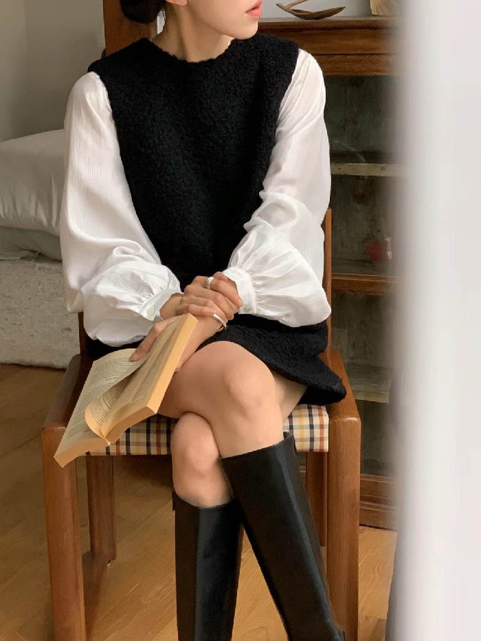 シアースリーブ ドッキングシャツ ボウタイシャツブラウス