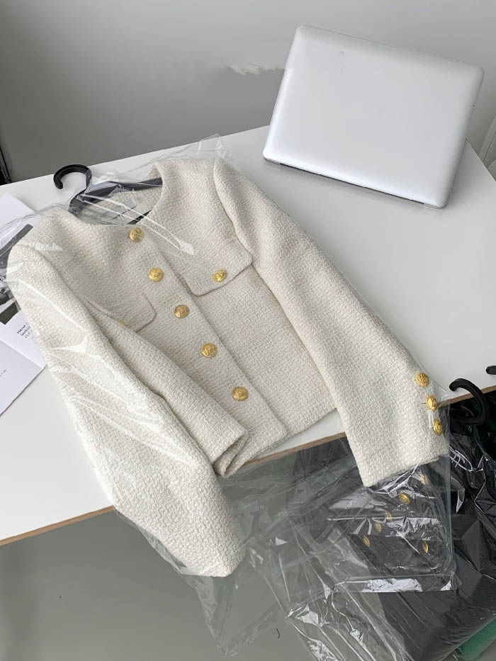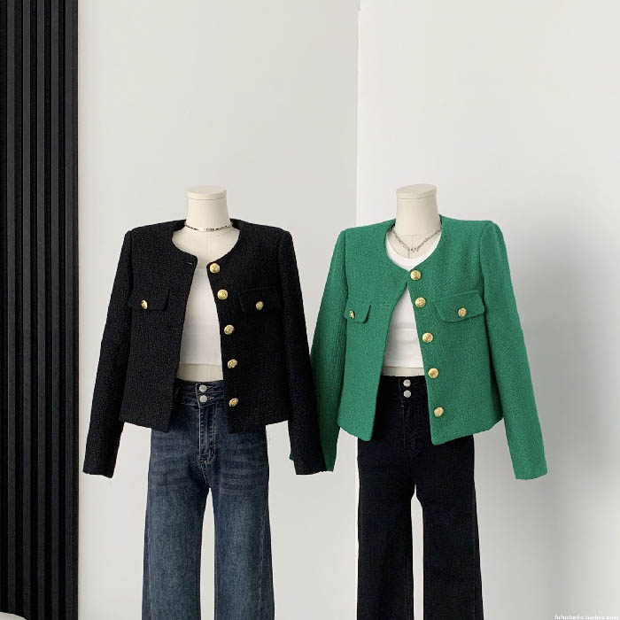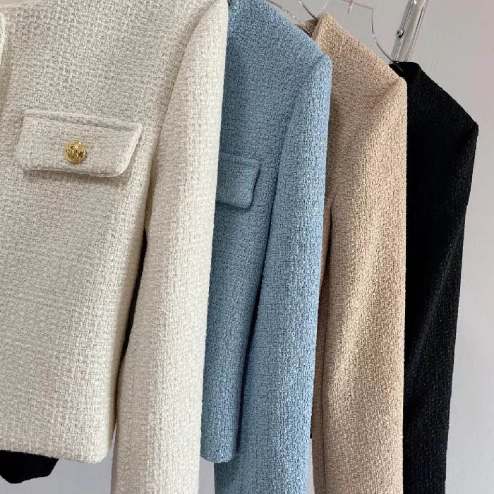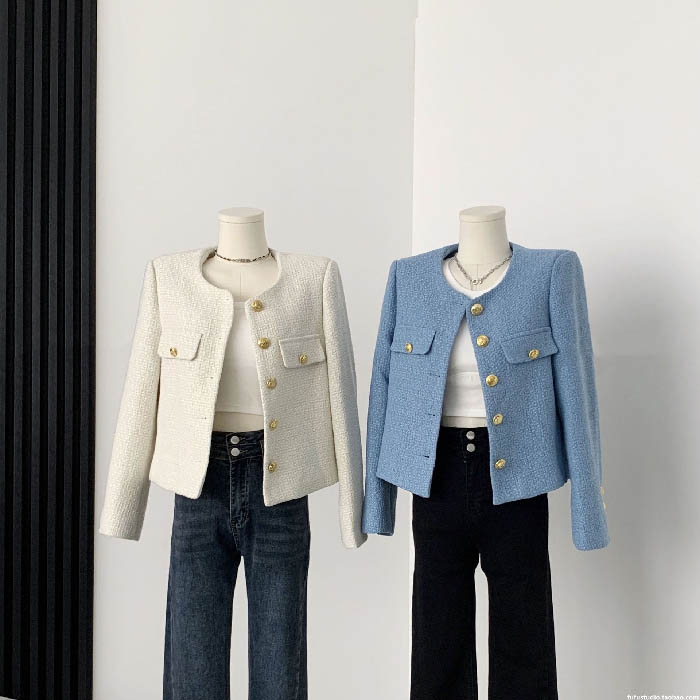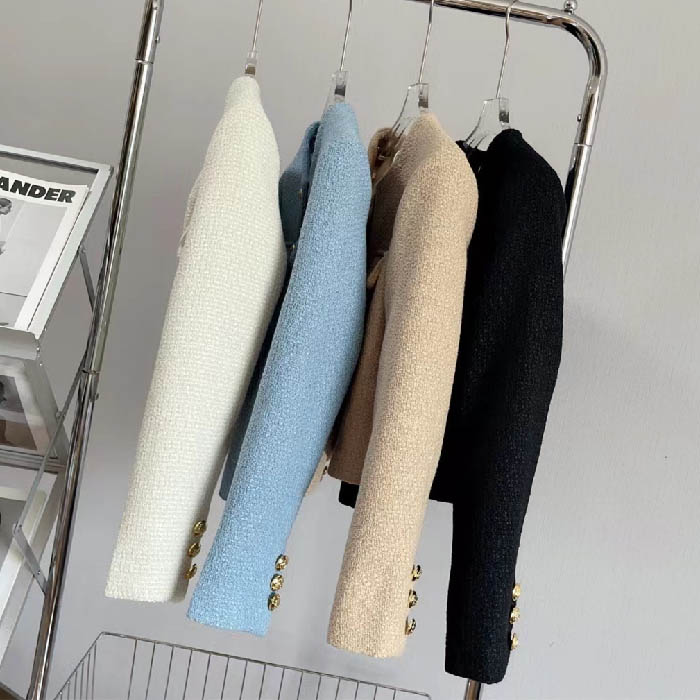 ツイード ジャケット ノーカラー レデ